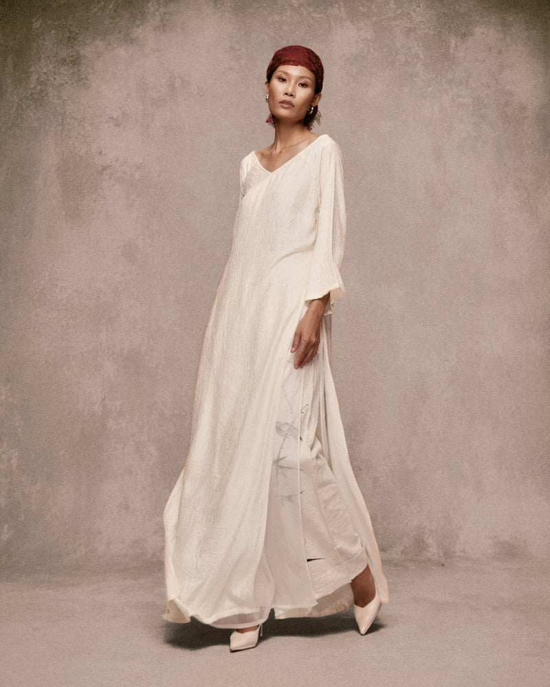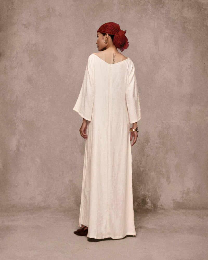 Haut dos nu brodé à la main en lin Long Hồ