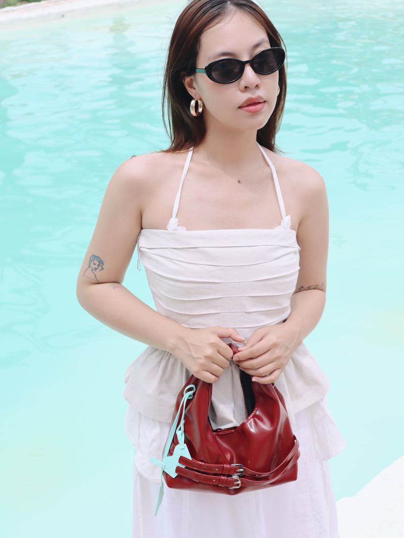 - Conçu et fabriqué par ARYA, ce sac bandoulière présente un design élégant à double ceinture qui allie élégance et polyvalence.