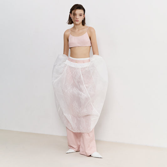 The Aster top, designed for effortless comfort and dynamic movement, pairs seamlessly with the Petal pants, which draw inspiration from the romantic curves of nature. This ensemble radiates a contemporary poetic charm, striking a delicate balance between functionality and aesthetic appeal.