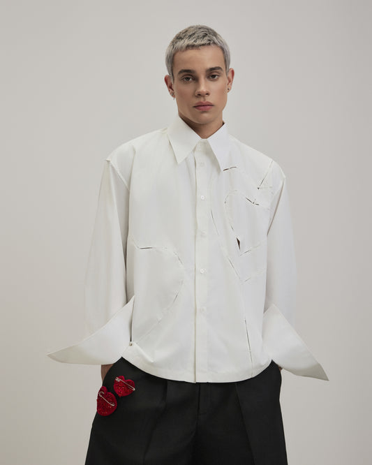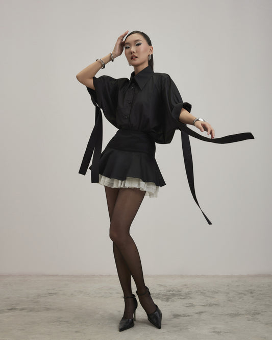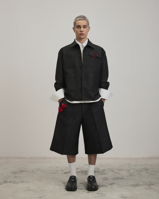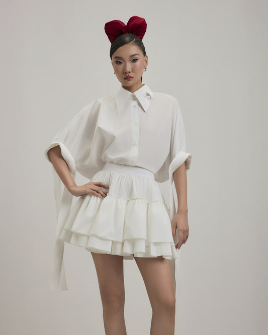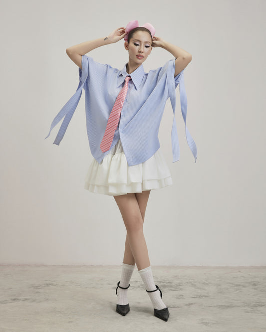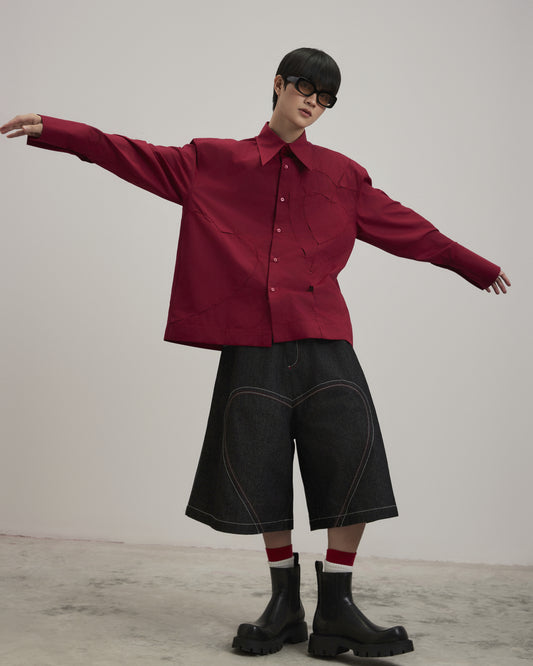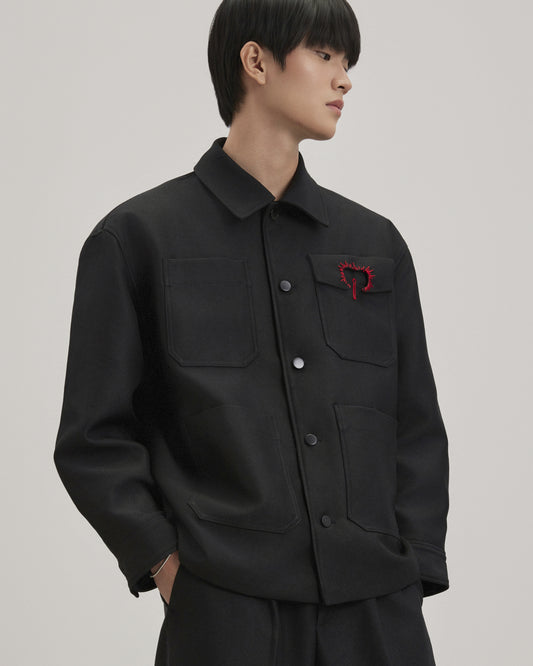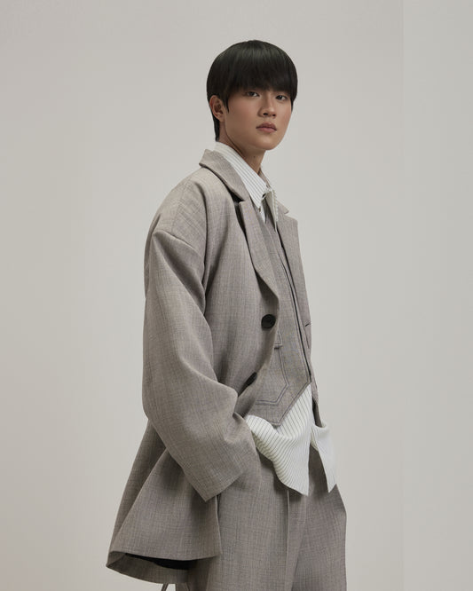 - The blazer has a loose fit and a streamlined neckline to create a unique look. The back and sleeves are disassembled and sewn with embossed ribs with the same color thread to create a cocoon sleeve shape combined with some padding to help make the shirt sturdy.