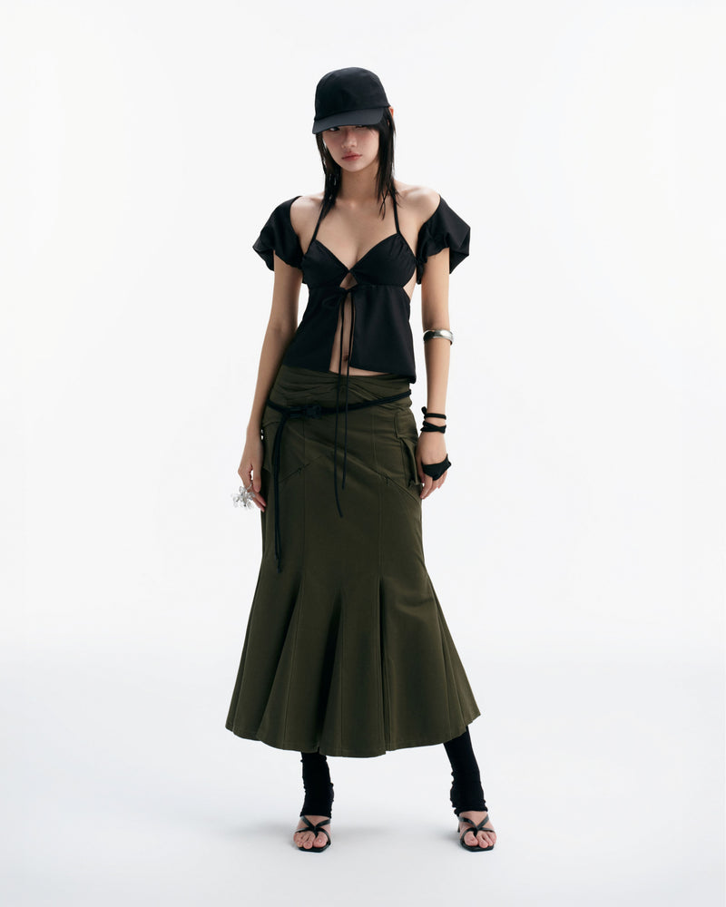 Model is 170 cm – 5'7", 46 kg – 101 lbs and wears size 1