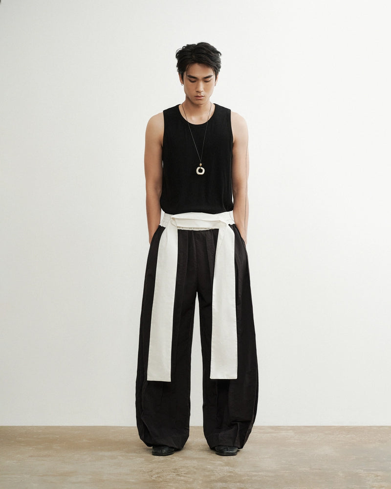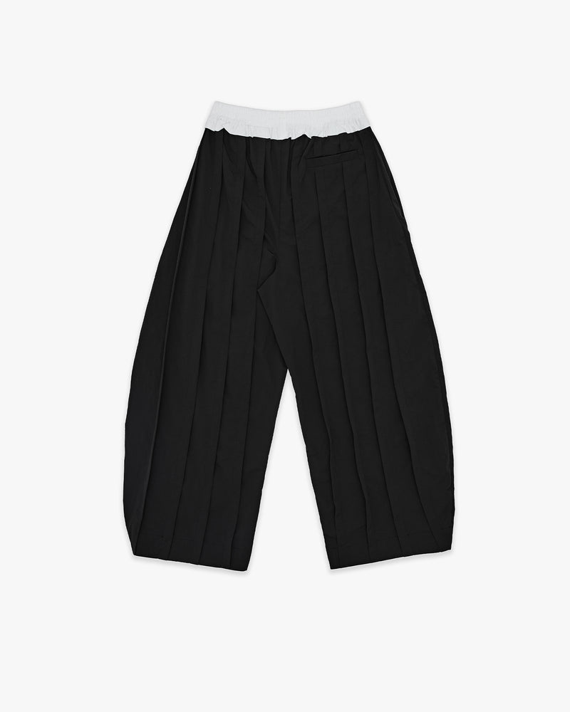 - These pants showcase a bold, contemporary silhouette with an oversized, fluid cut that enhances movement.