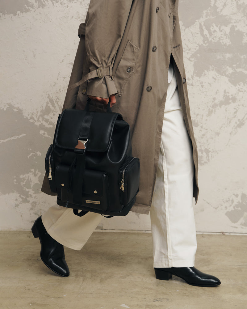 - Crafted from premium PU leather with a refined, smooth finish, the SGS LUNE NOMAD BACKPACK is fully lined with water-repellent Oxford fabric for enhanced durability and protection.
