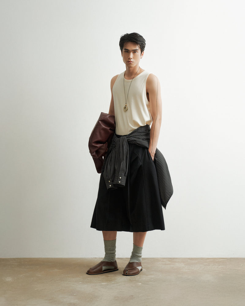 - Structured yet fluid, these wide-leg culottes capture the quiet elegance of Pre-Fall’25.
