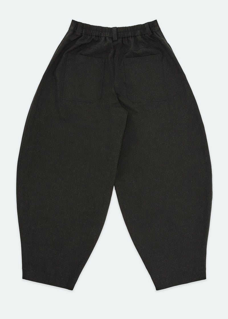 - Contemporary tailoring pants inspired by the sculptural form of pottery vessels.