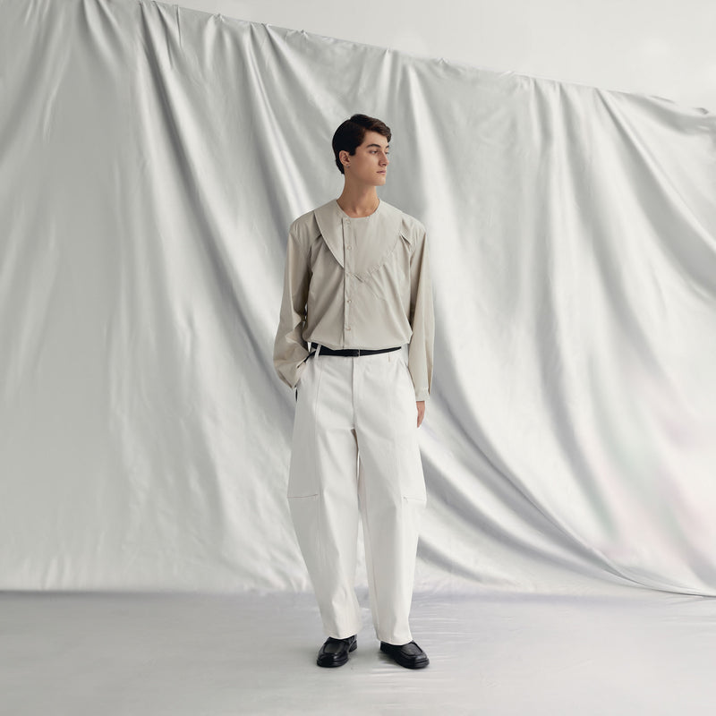 - Round neck, long sleeves, wide form, cut-out on the body.
