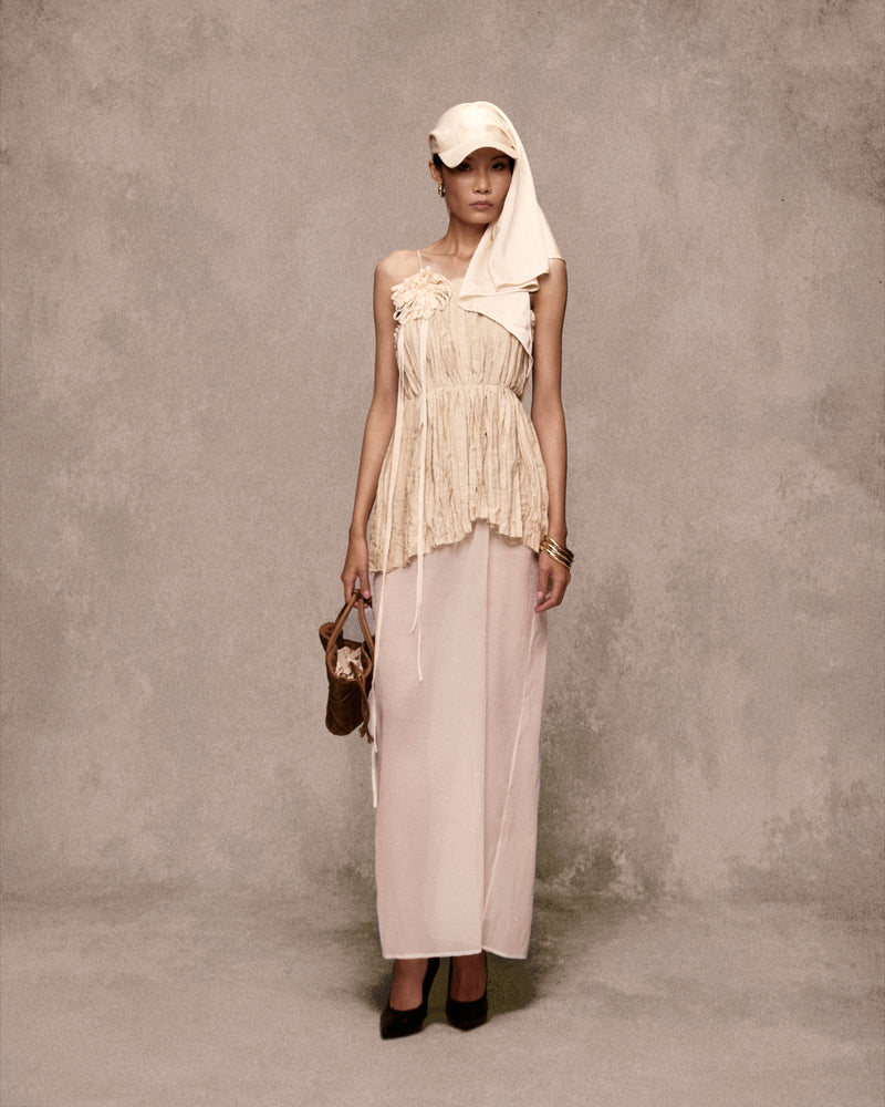 - Crafted in linen, the slip dress exudes femininity, expressed through the finesse of meticulous and flowing details.