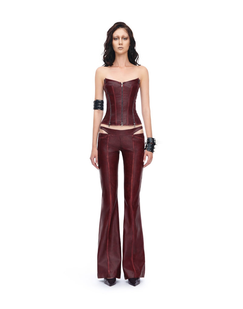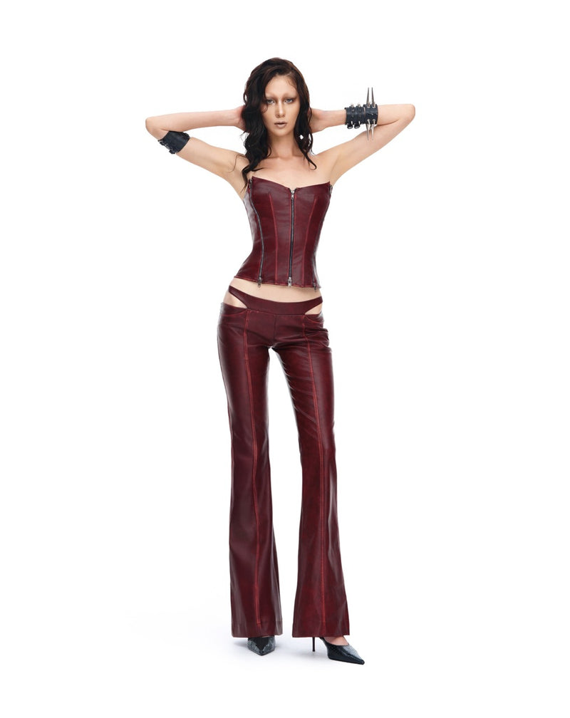 - Crafted from high-shine faux leather in a striking red shade, these pants combine eye-catching color with a sleek, figure-flattering silhouette.