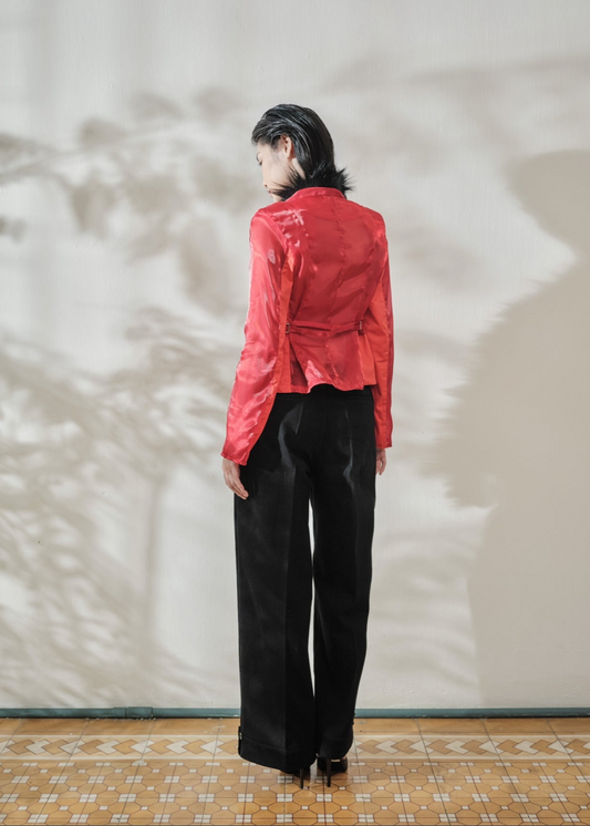 - Pleated details inside-waxed hem with adjustable buttons