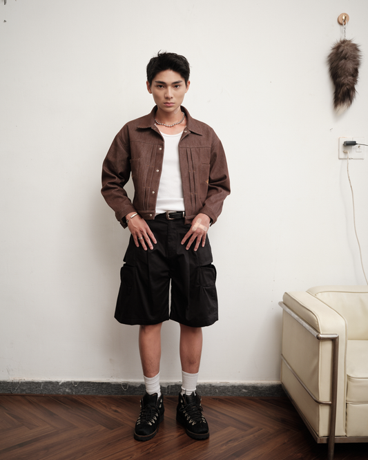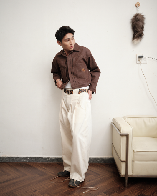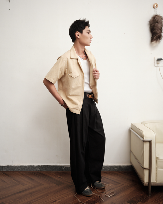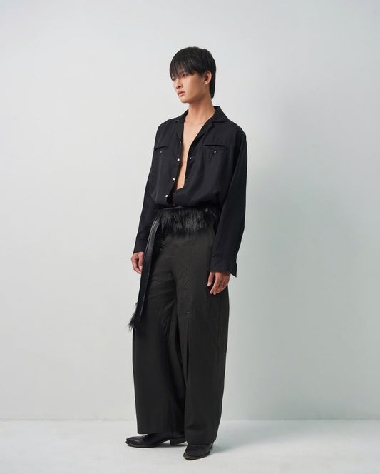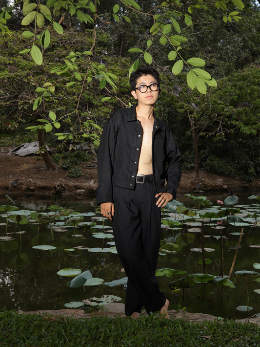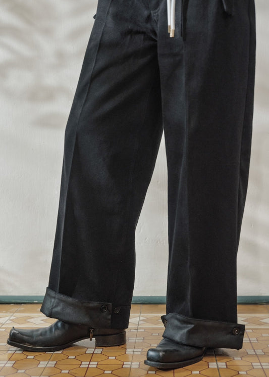 Black Denim Pleated Trousers