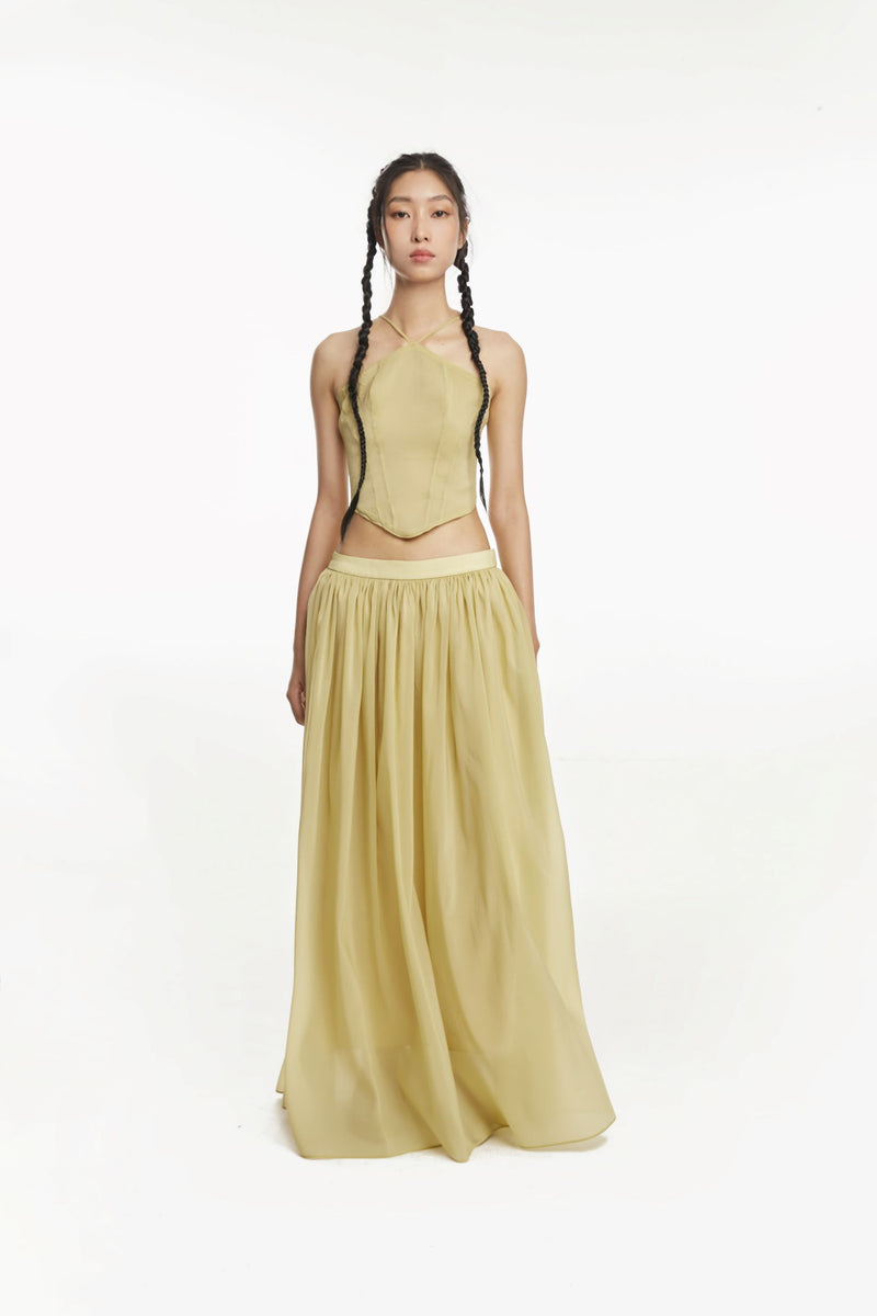 Elegant and exquisite, this full-length skirt flatteringly accentuates the waist while creating volume at the hips. It exudes an irresistible charm and poetic grace.