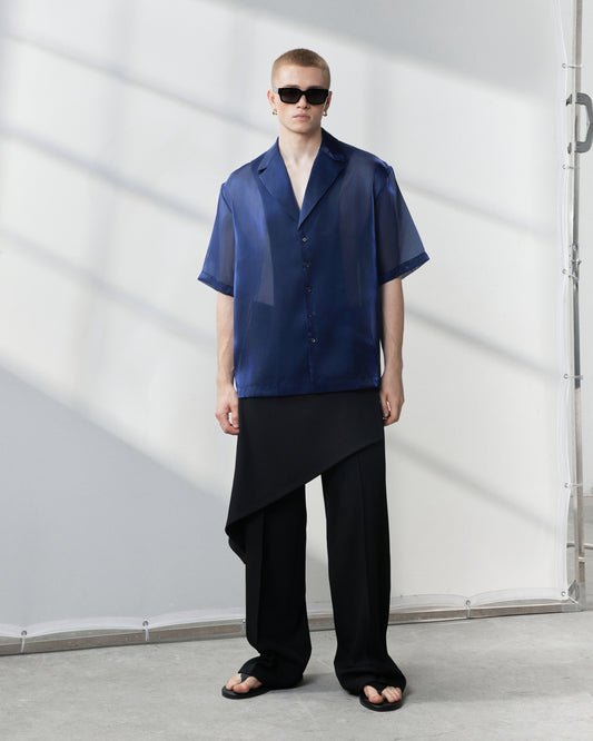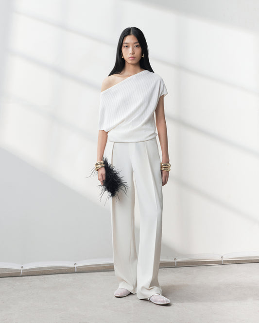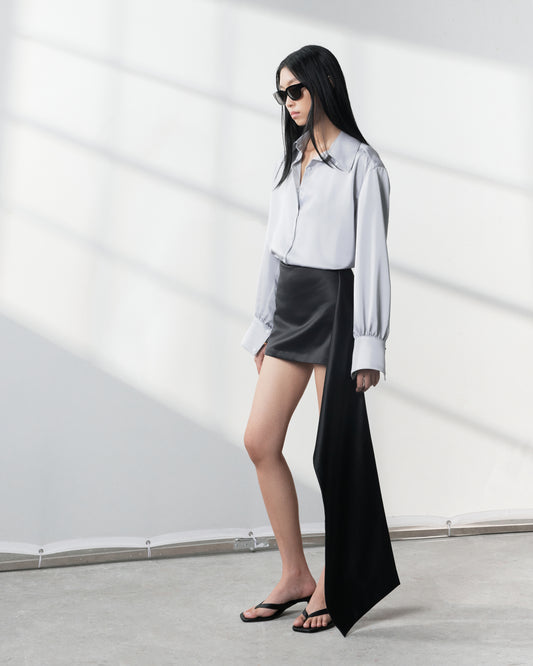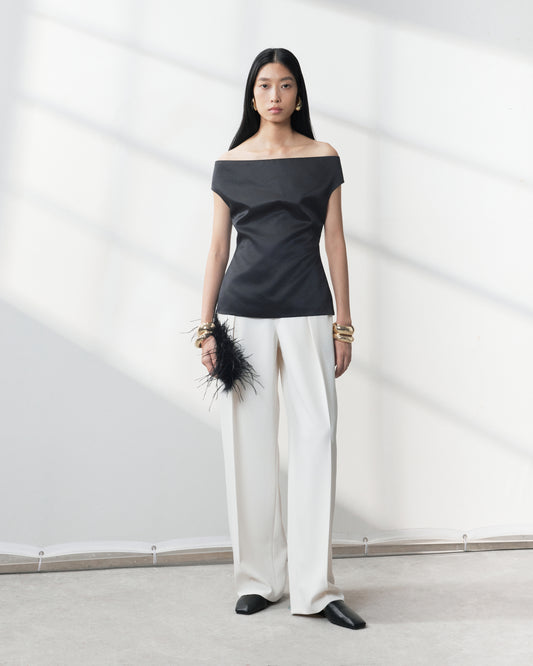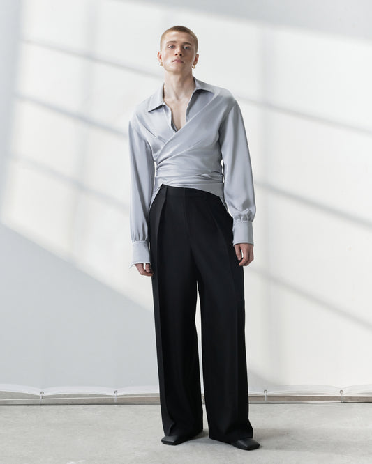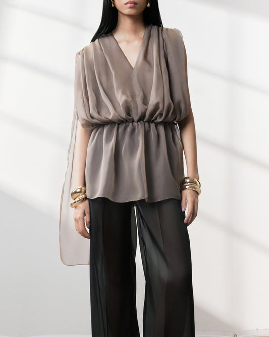 - Two draped front darts and two draped back darts.