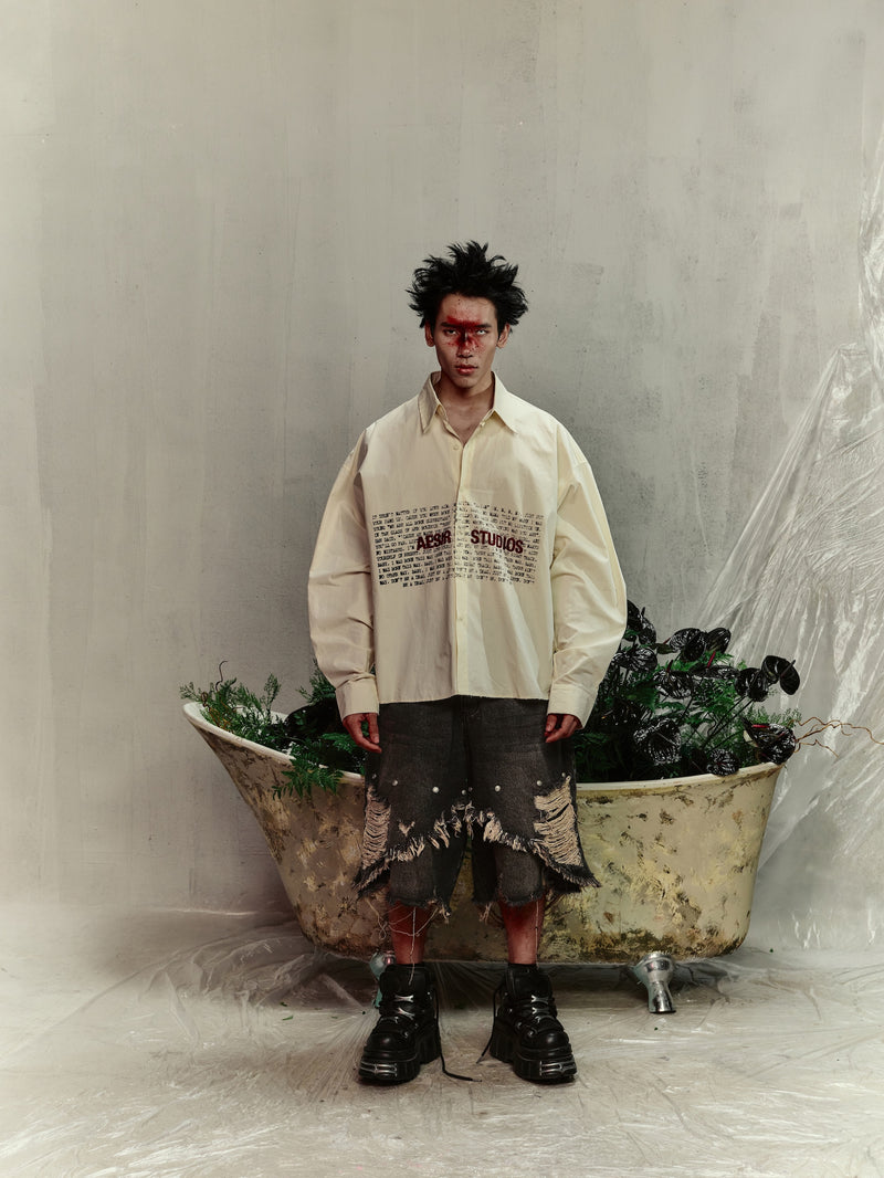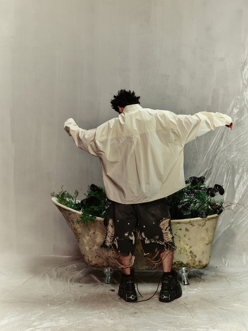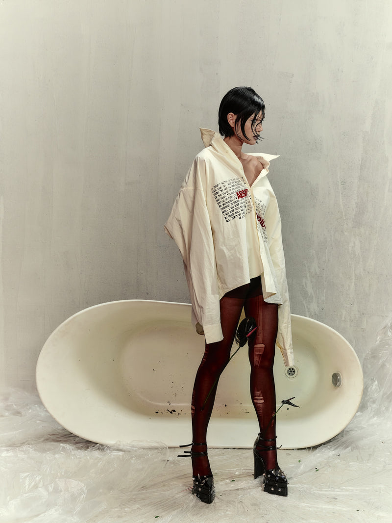 - Form: Oversized fit with dropped shoulders, wide long sleeves