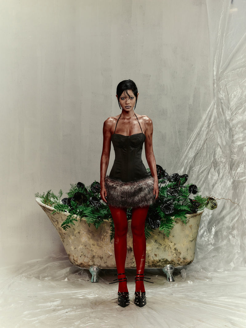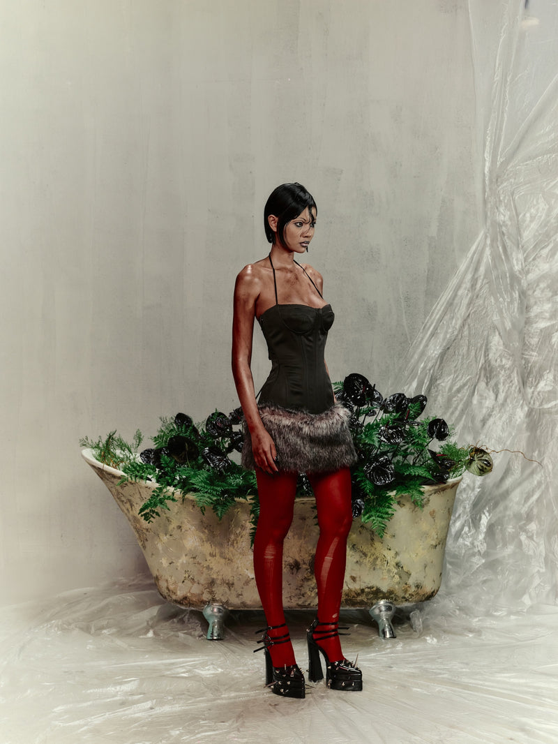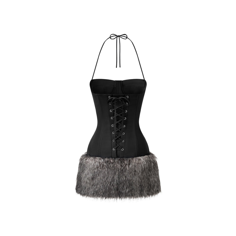 - Silhouette: Mini dress with a knee-grazing length and flattering corset-style lace-up detail.