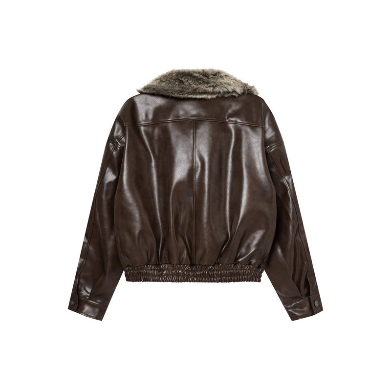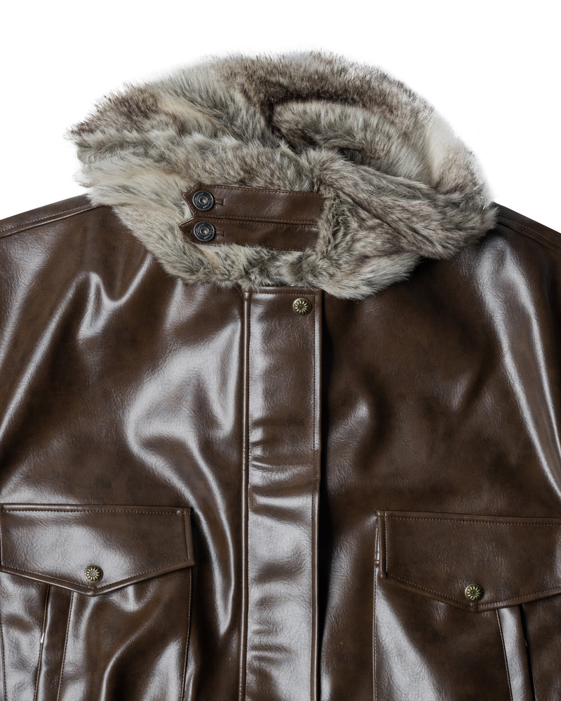 - Oversize fit jacket in heavy faux leather with a faux shearling collar