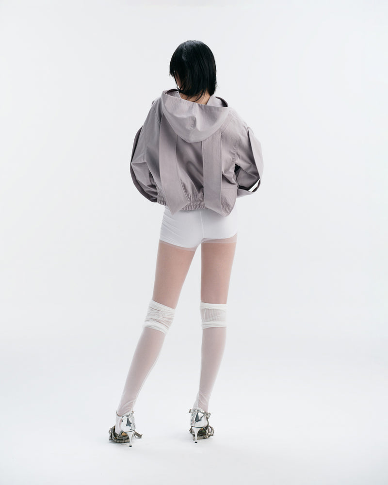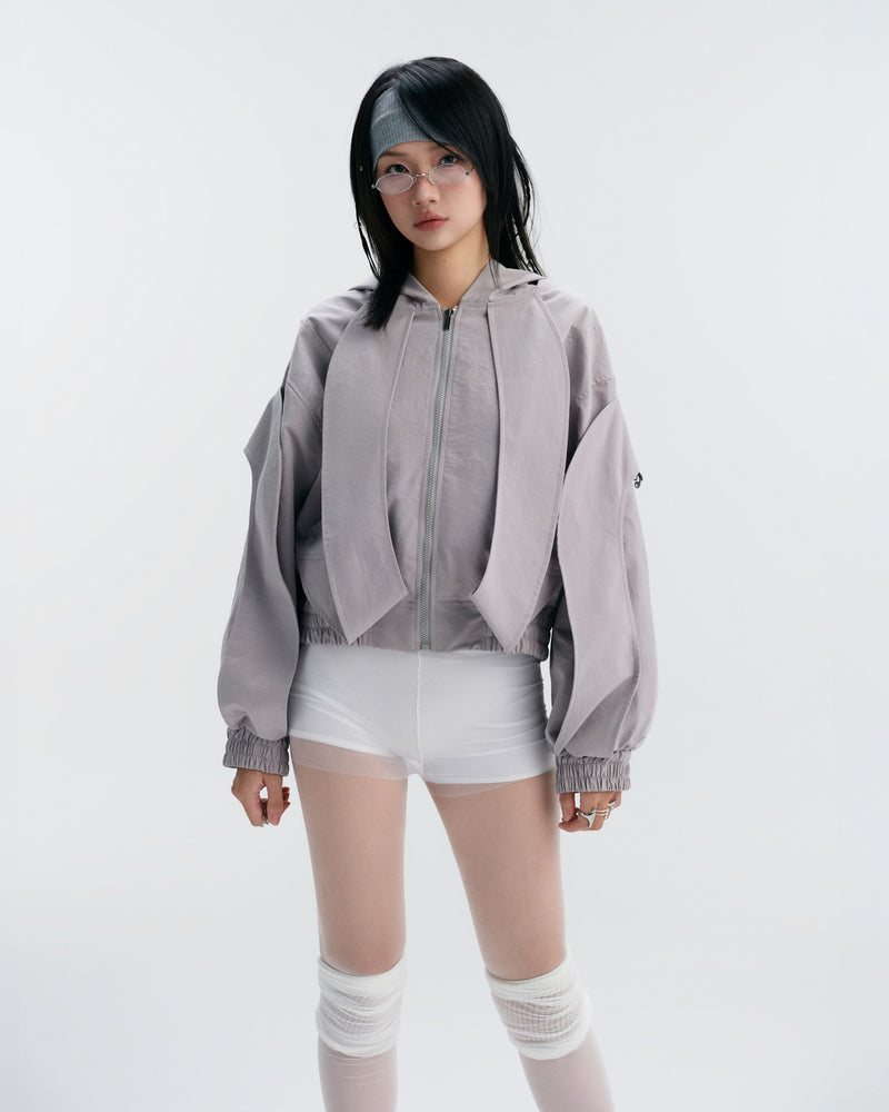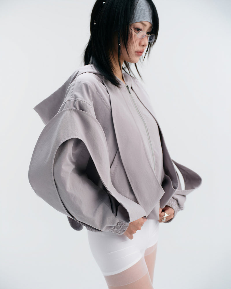 - Boxy-fit jacket with decorative flap detailing and a metal logo accent.