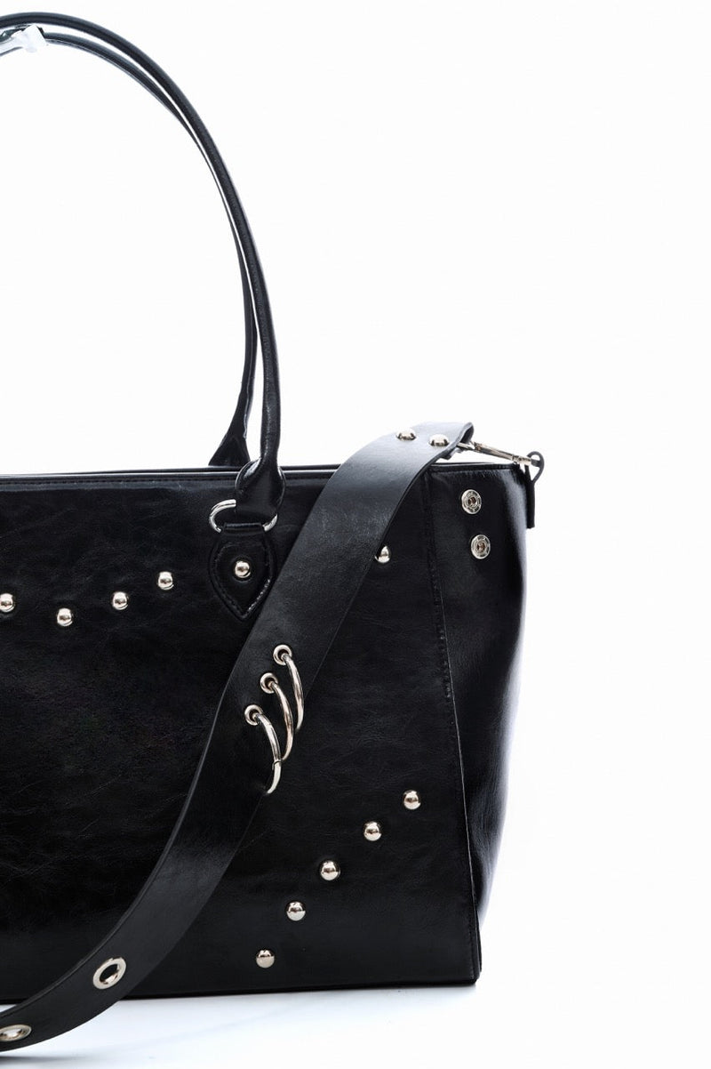 - Eye-catching metal charms that add a rebellious touch to the minimalist base.