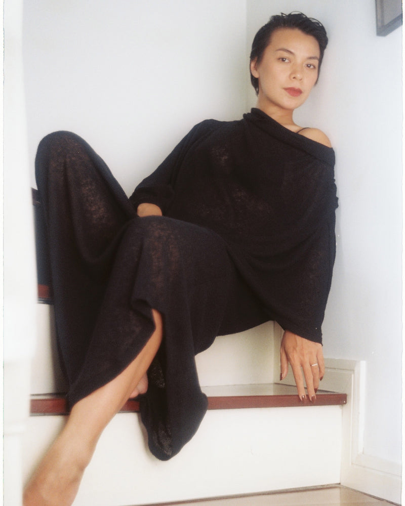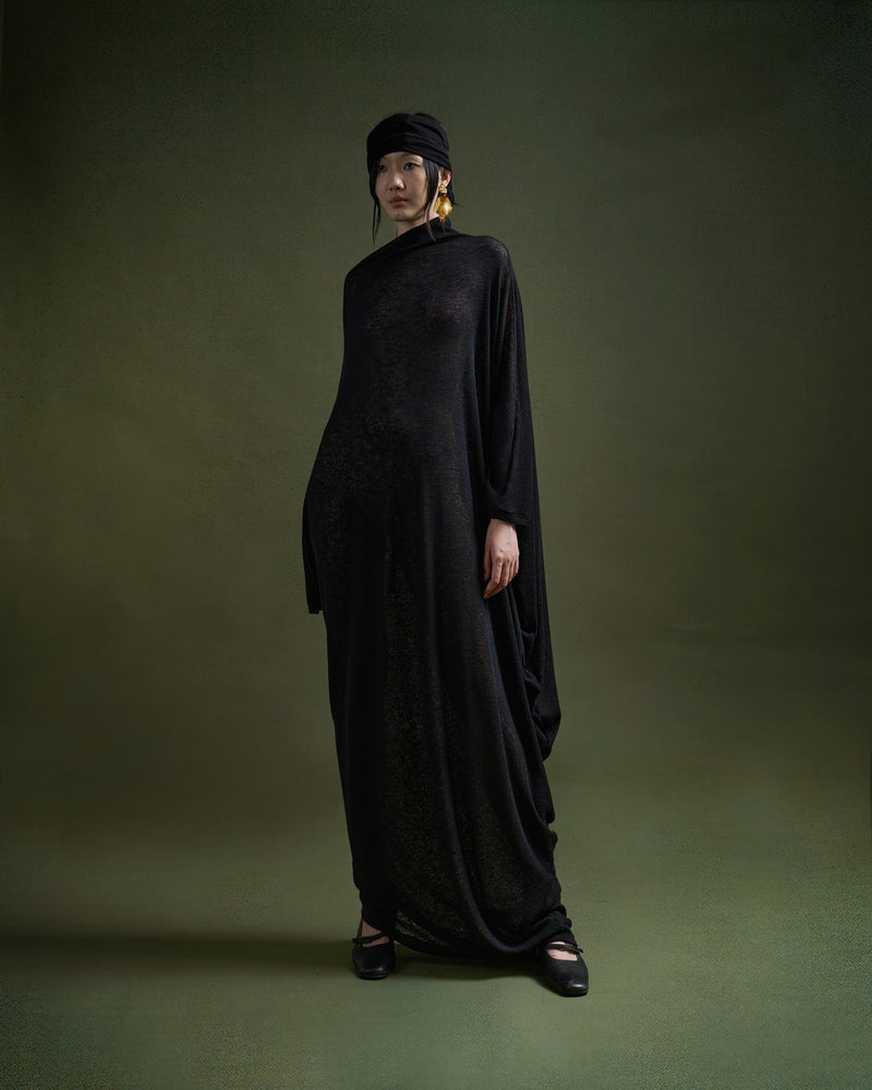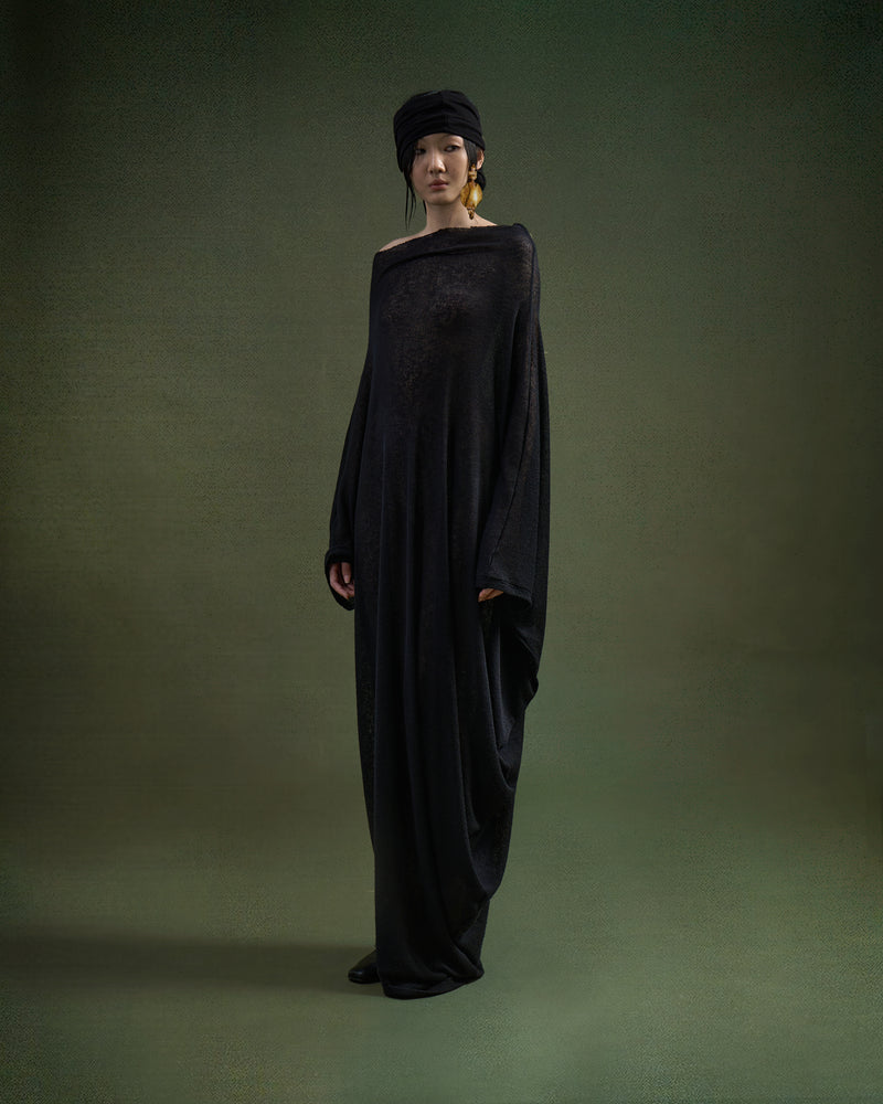 - Features a delicate knit pattern throughout the relaxed silhouette paired with a full length sleeve and a maxi length hemline.
