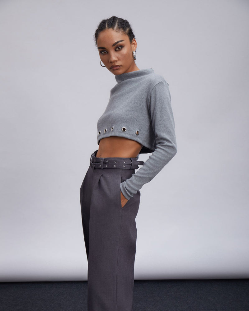 - Cropped shirt with turtle neck can be created in many styles, long sleeve shirt.