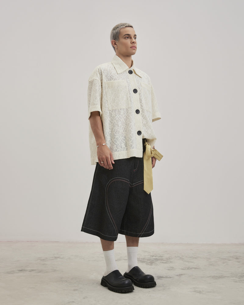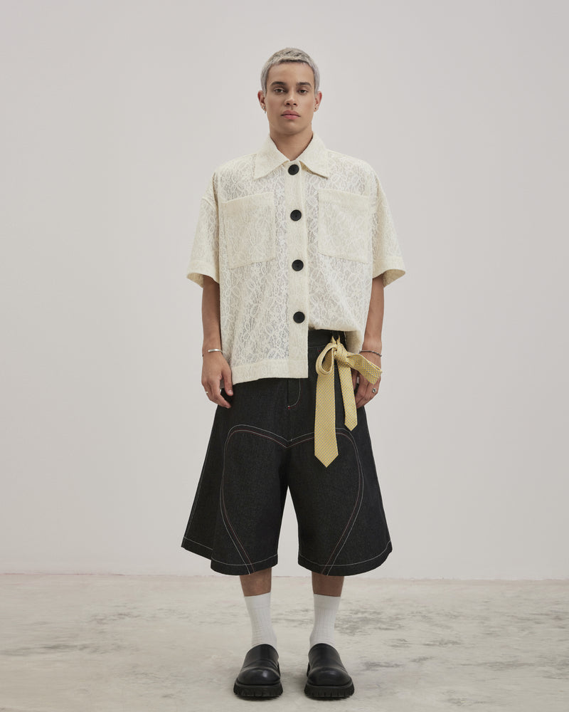 - Short-sleeved shirt with an oversized, comfortable fit and a square silhouette inspired by Japanese design.