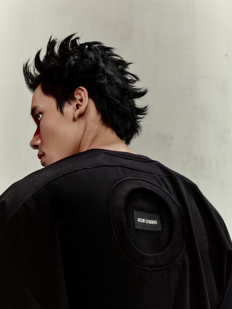 - Fit : Oversized batwing fit with dropped shoulders and wide, seamless sleeves extending from the body.