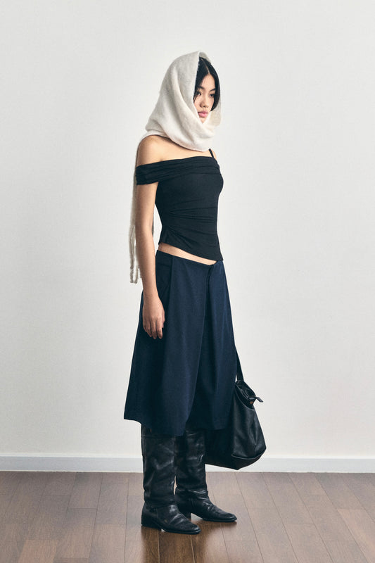 Low waist, wide-leg shorts, symmetrical large pleat fold design at the front, side seam pockets.