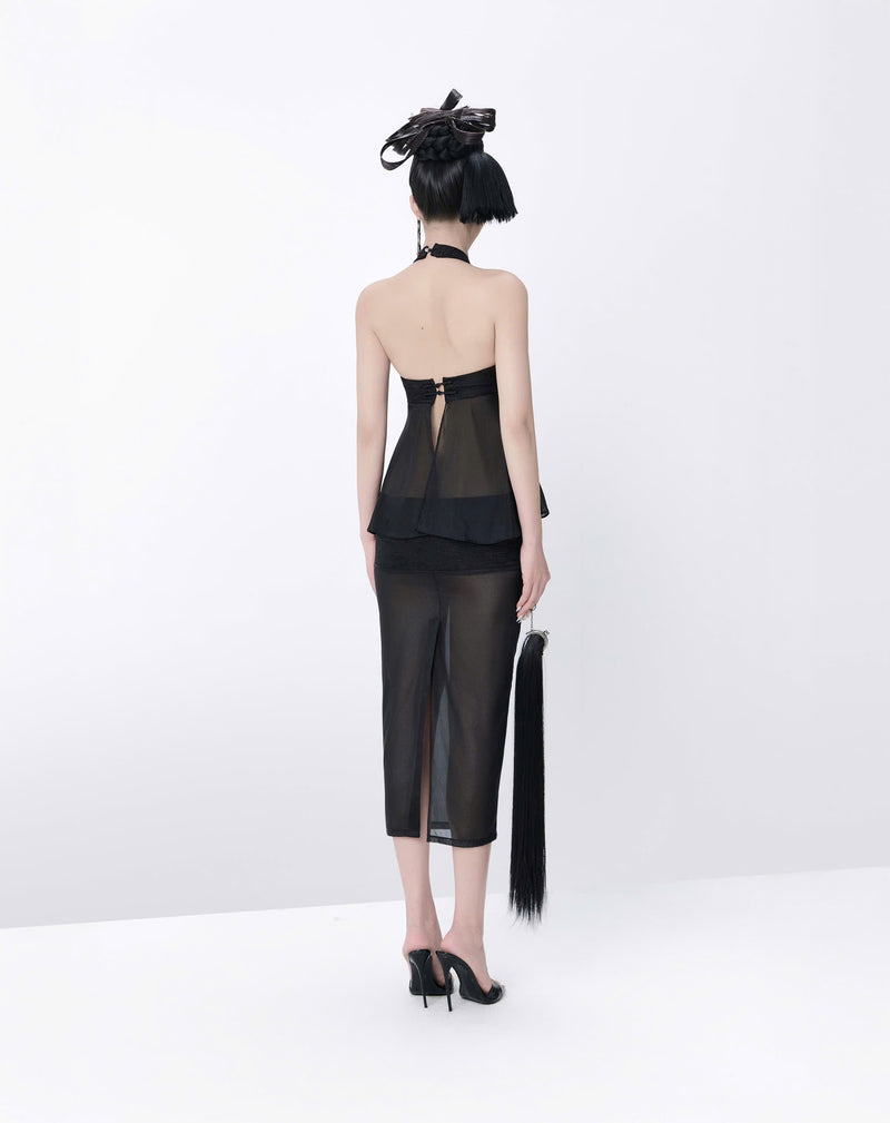 - Crafted from premium sheer chiffon, the fabric is lightweight, fluid, and semi-transparent, creating soft layered movement.