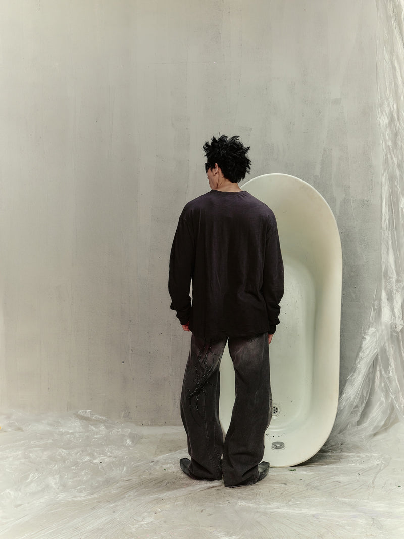 - Fabric material: Lightly stretchy slub knit fabric with a raw