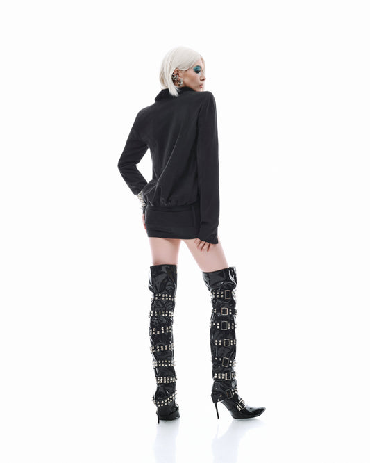 - The standout detail? Metal studs embellishing the front, adding a rebellious, rock-inspired edge.