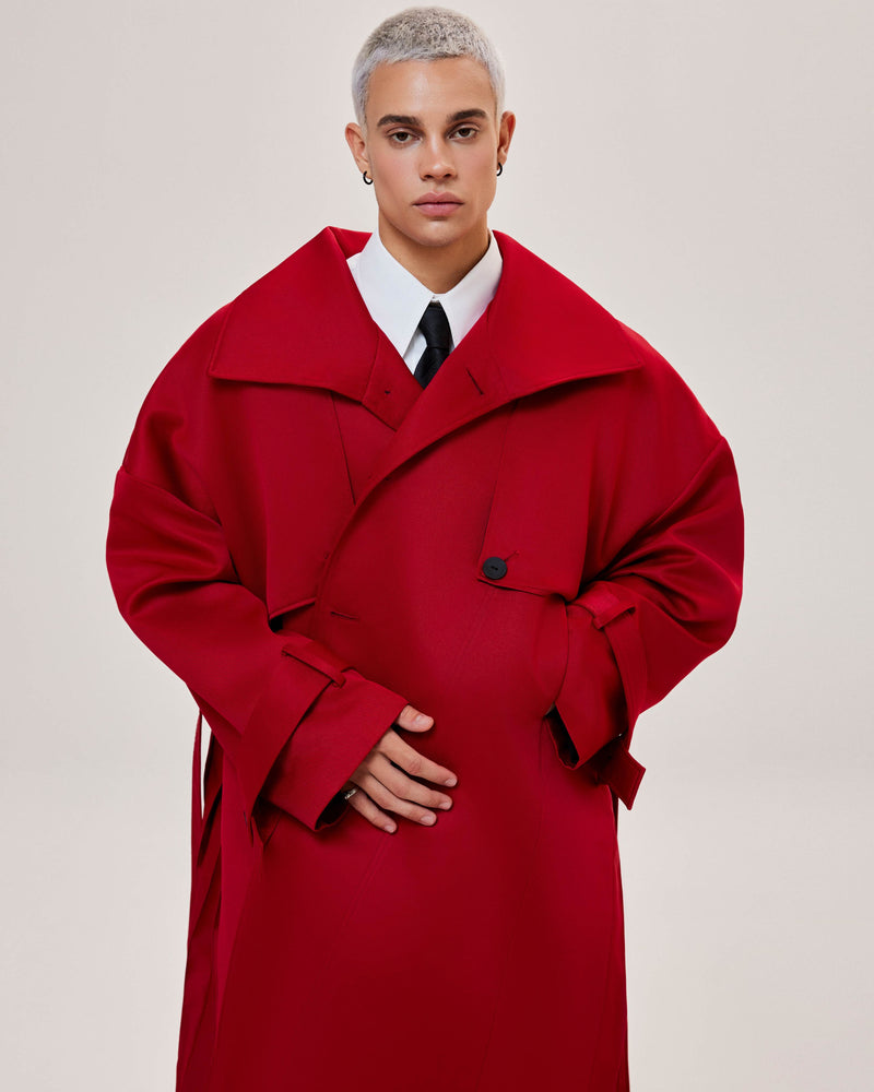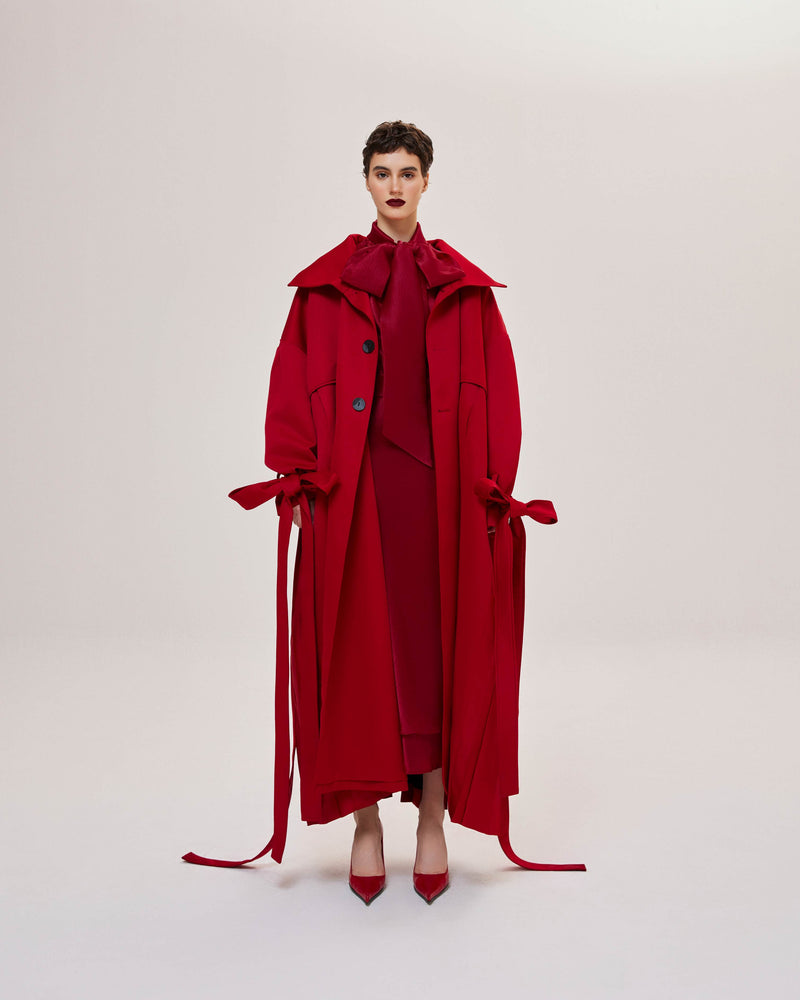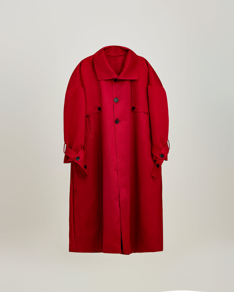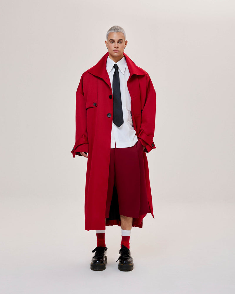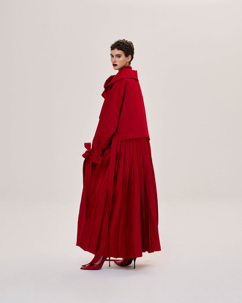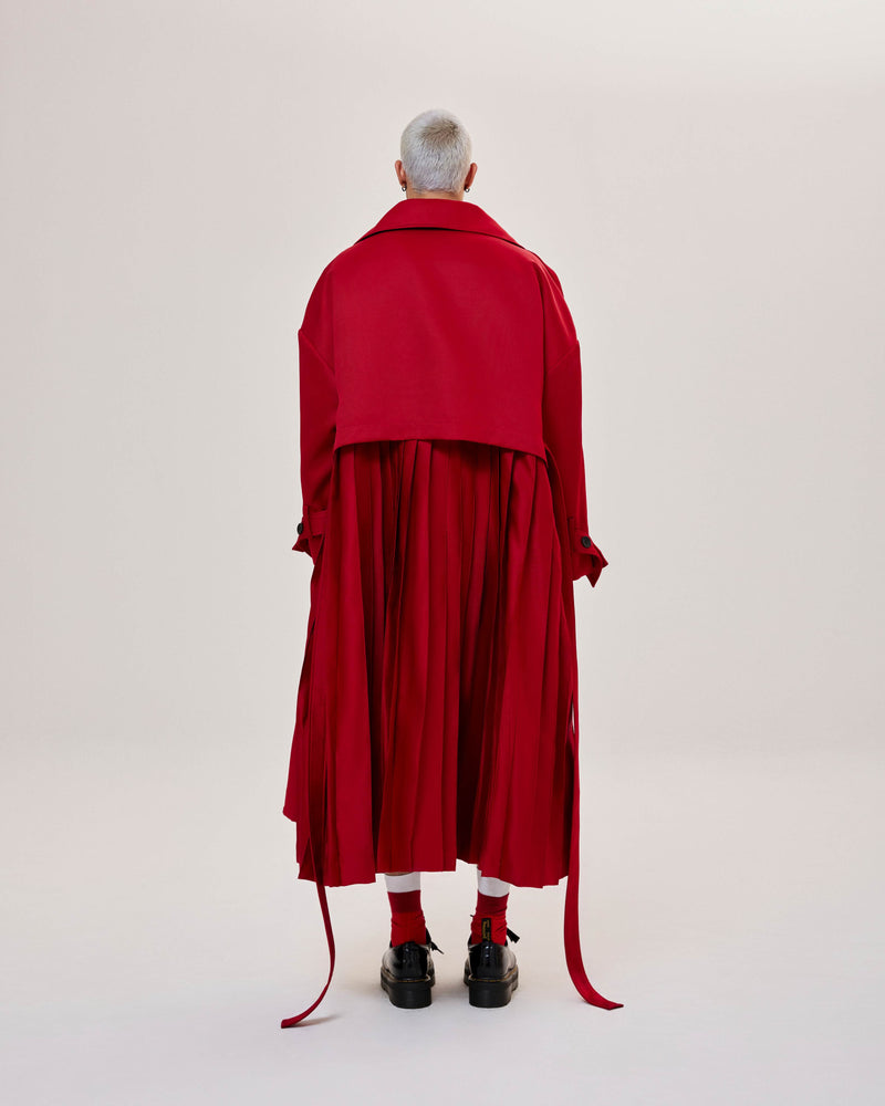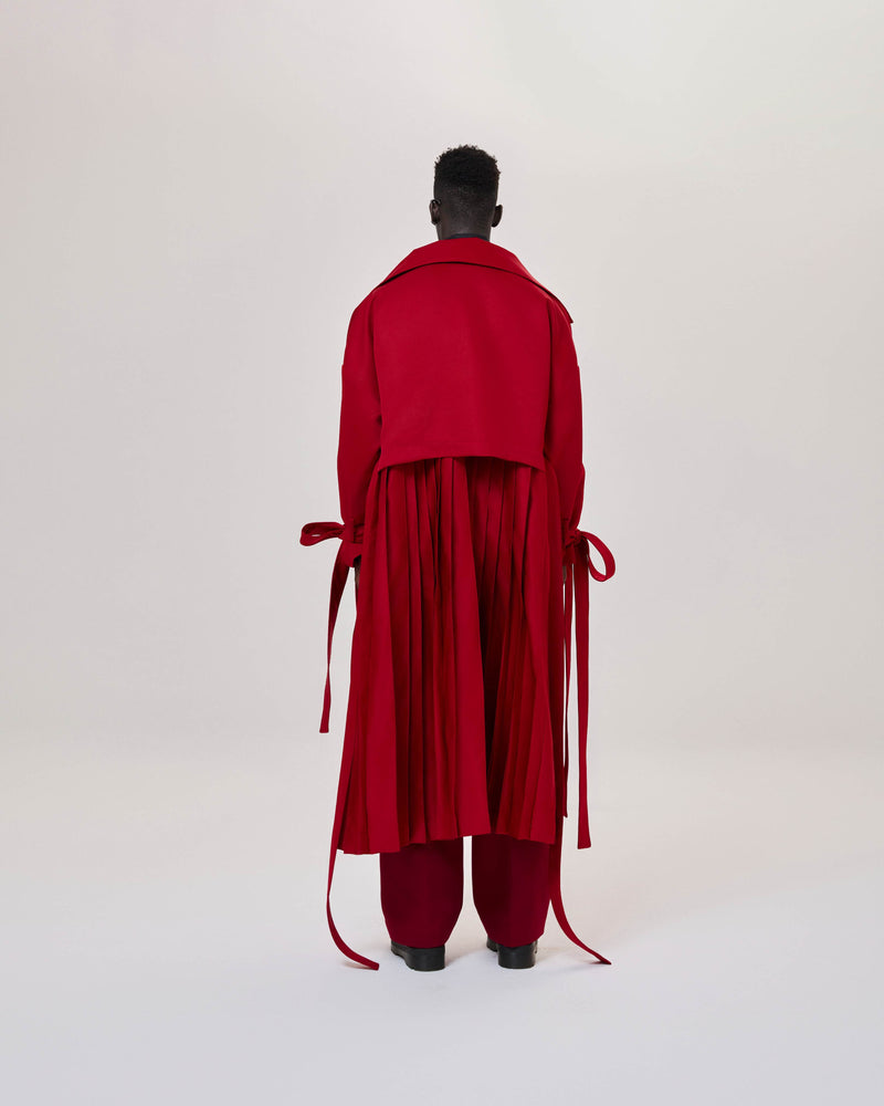 Red Pleated Overcoat