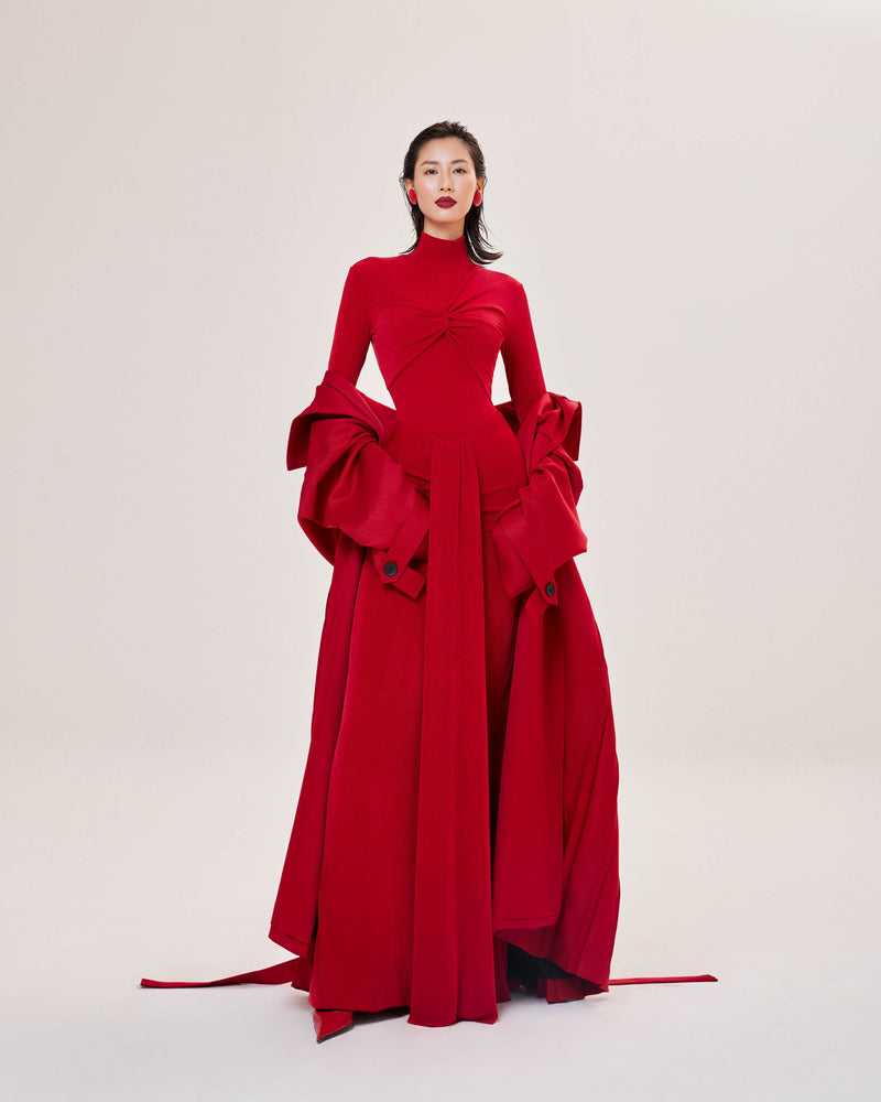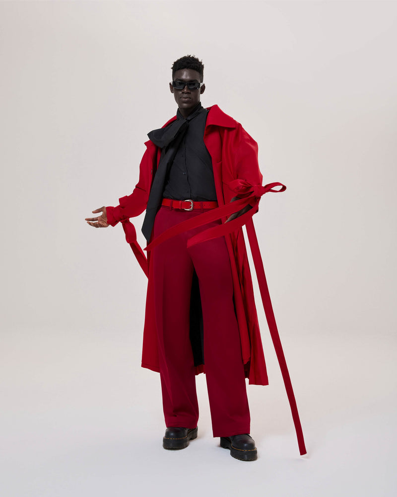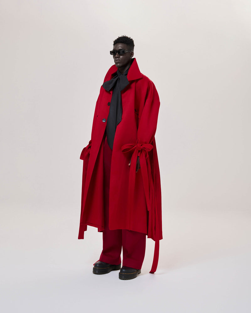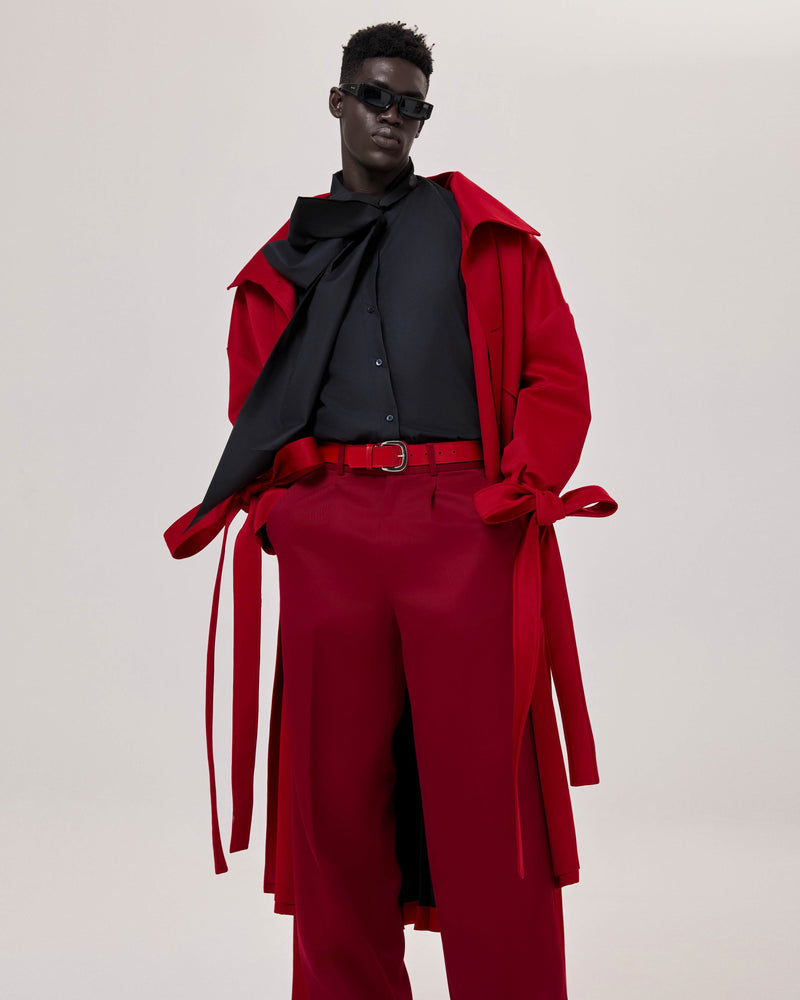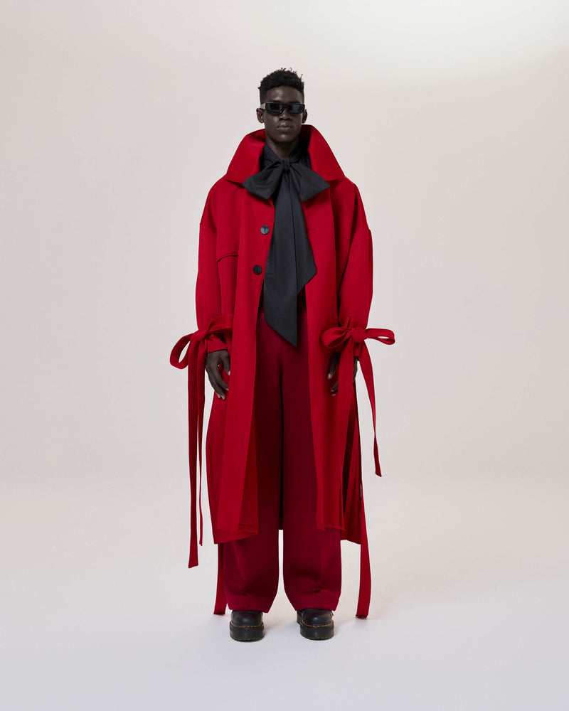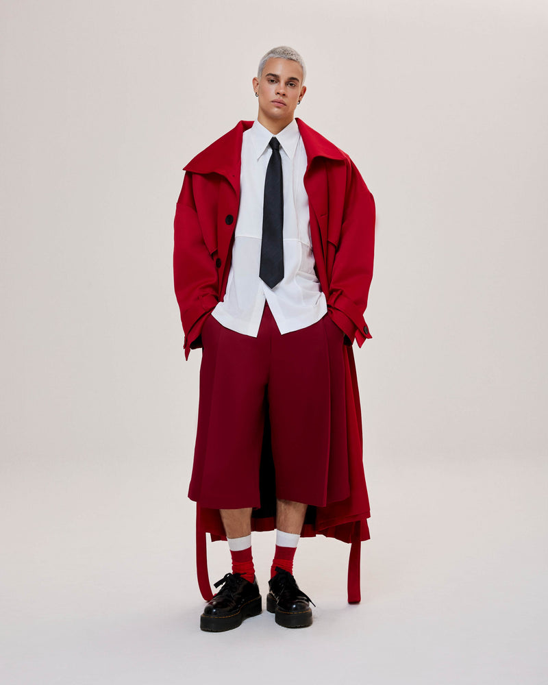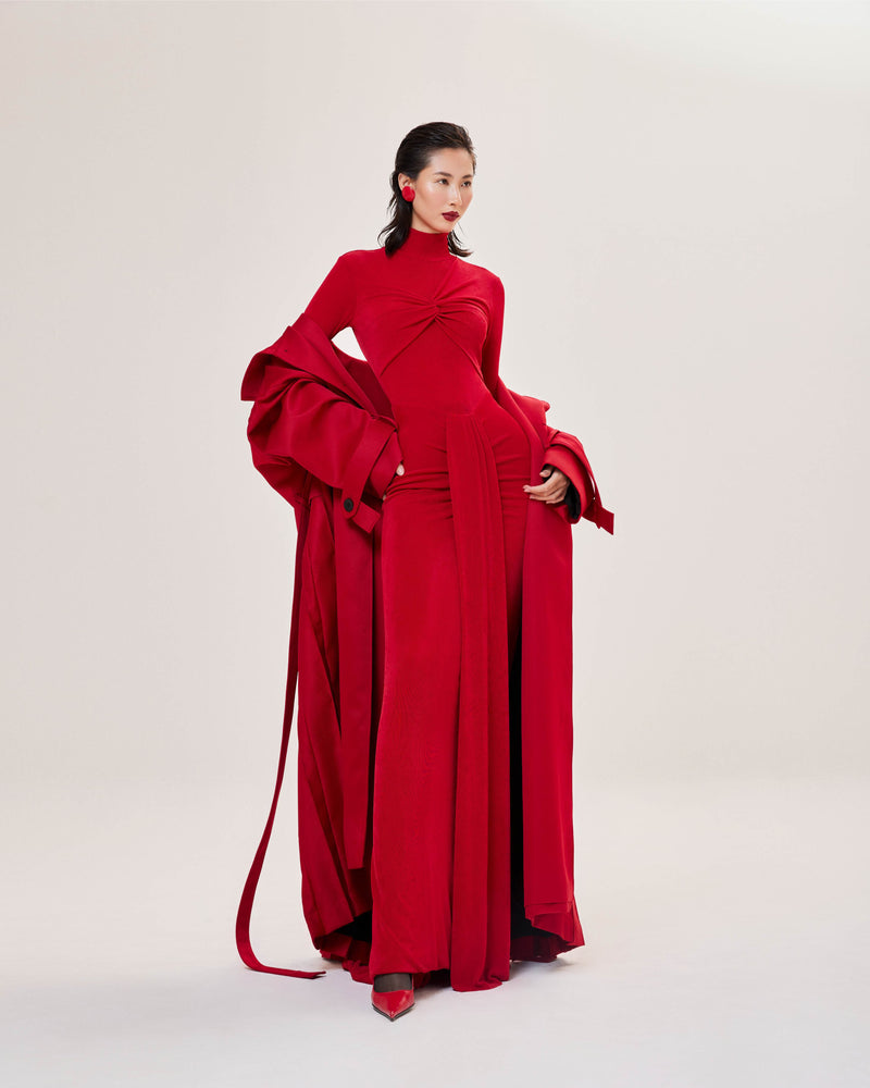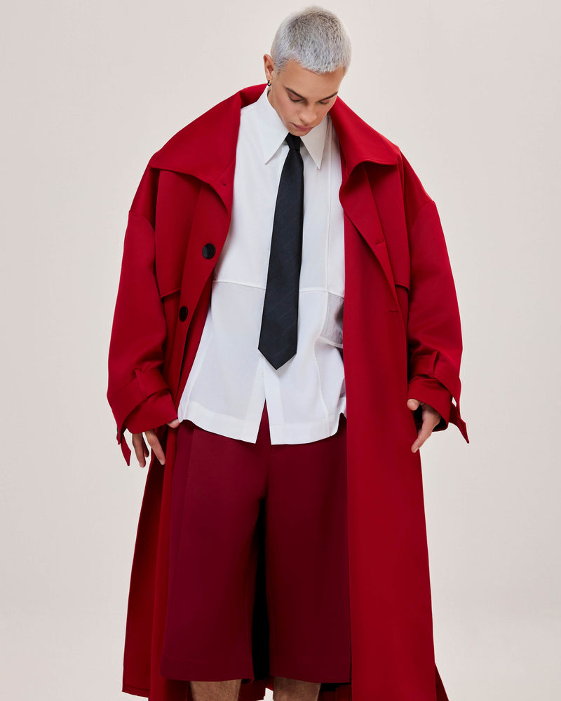 Red Pleated Overcoat