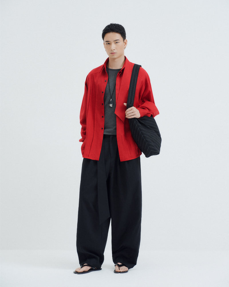 - An architectural take on relaxed tailoring, shaped by extended lines and refined textural details that bring depth to an understated form.