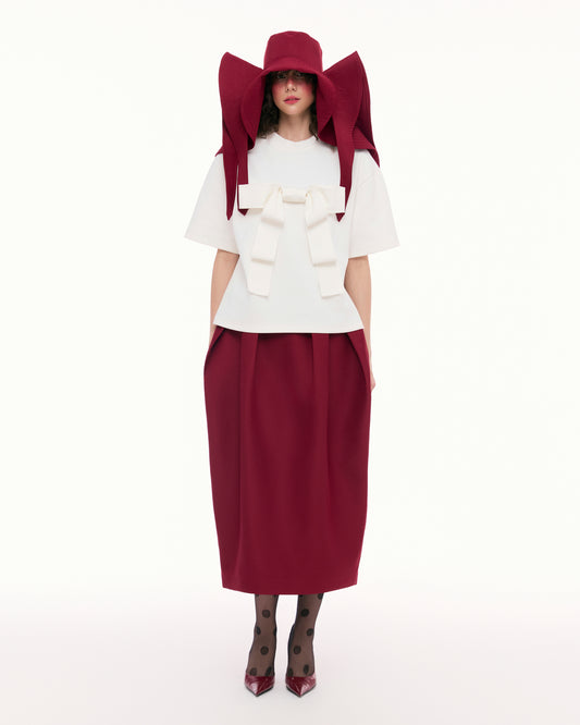 - It features a unique layered design, with the front body intricately constructed from two interwoven layers of fabric to create a striking visual effect.