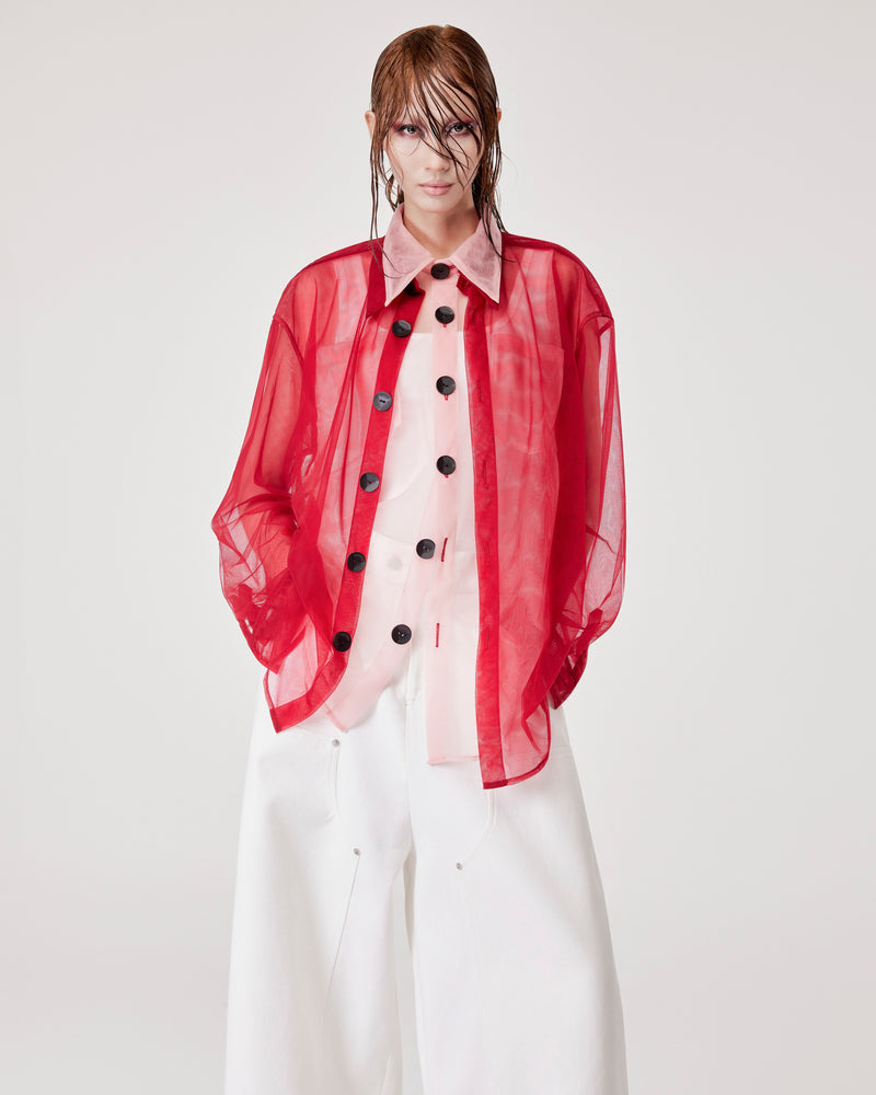 - This is a relaxed, straight-fit shirt crafted from translucent, breathable, and lightweight tulle fabric.