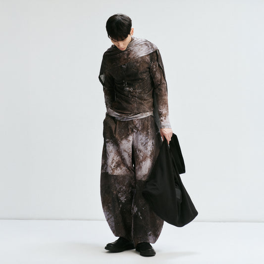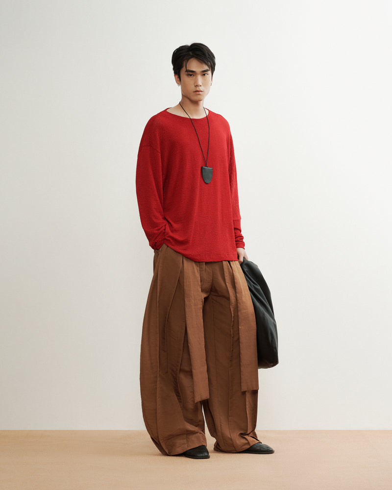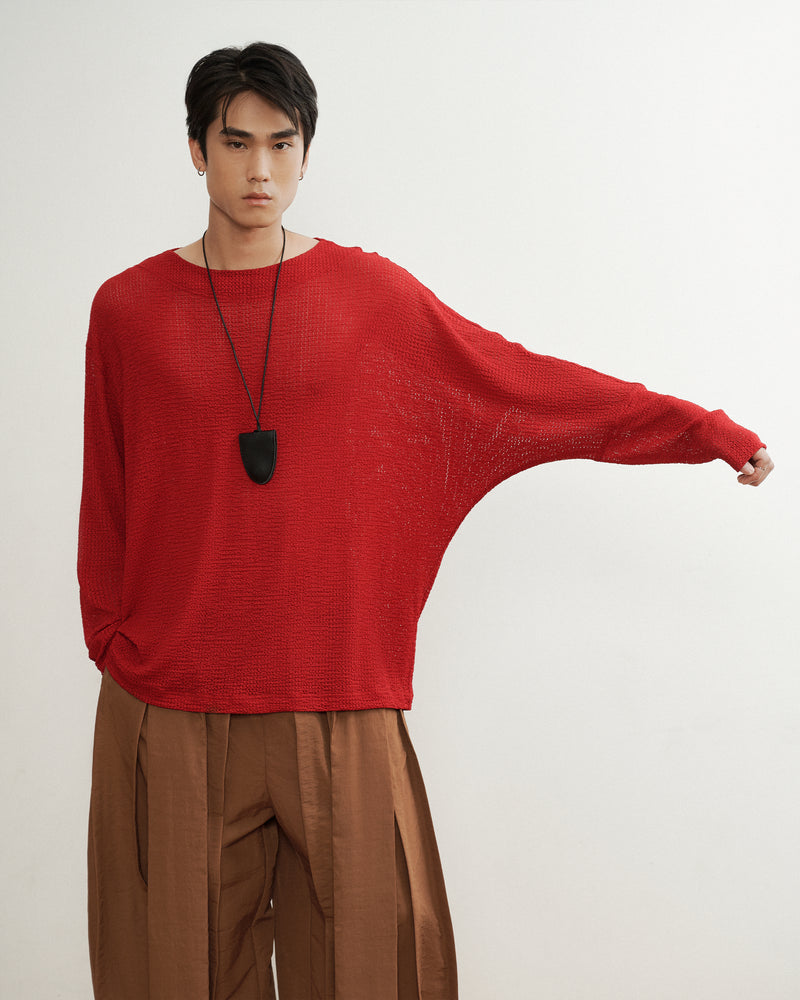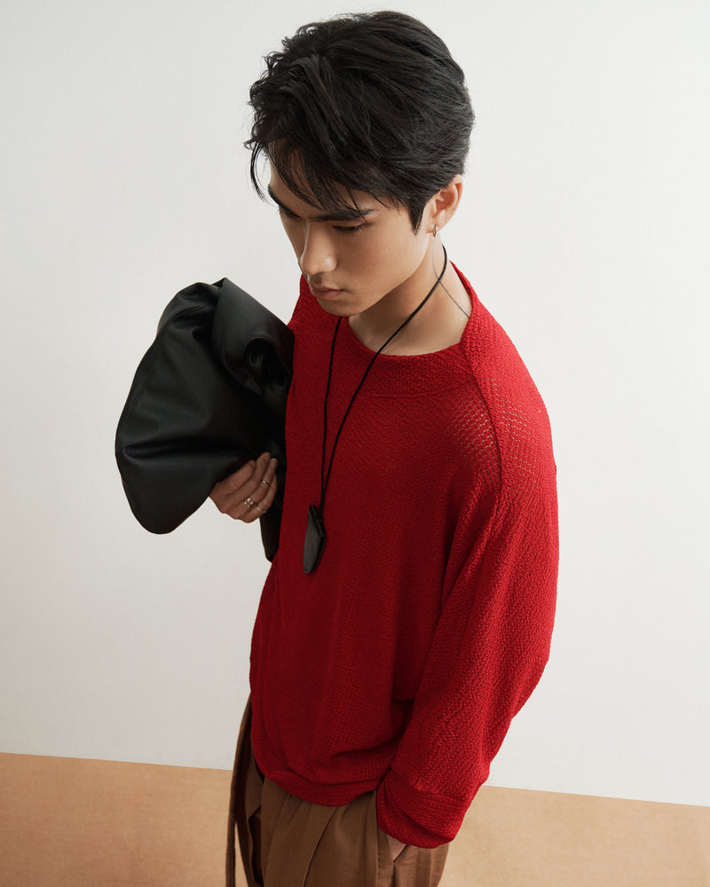- Relaxed-fit knit long-sleeve shirt, designed with a subtly sheer texture that adds depth and breathability.