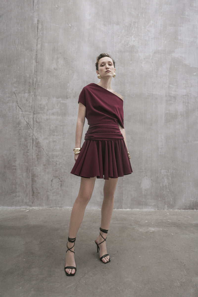 S25 Women's Burgundy Wool Suiting Dress