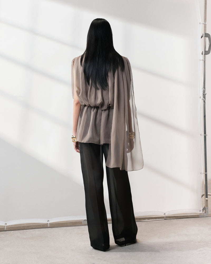 - The flap is attached on the right and can style at the front or back depending on the wearer