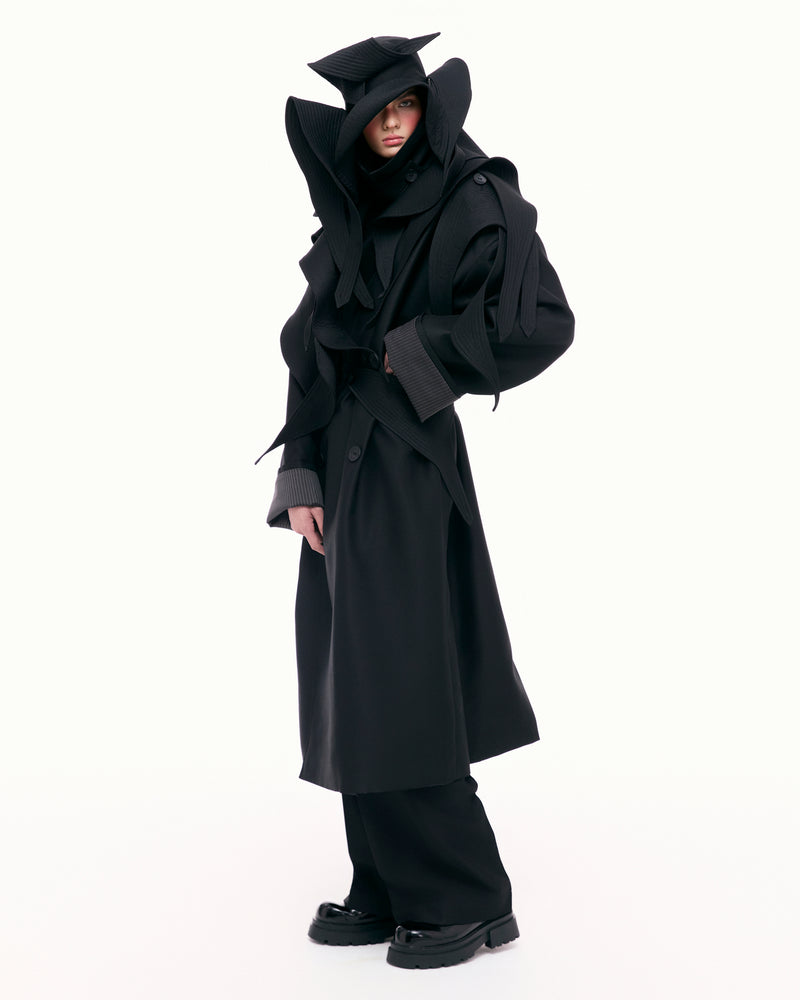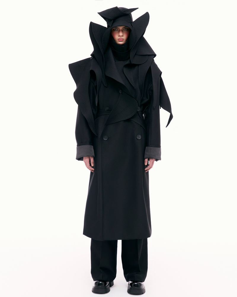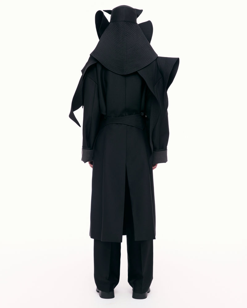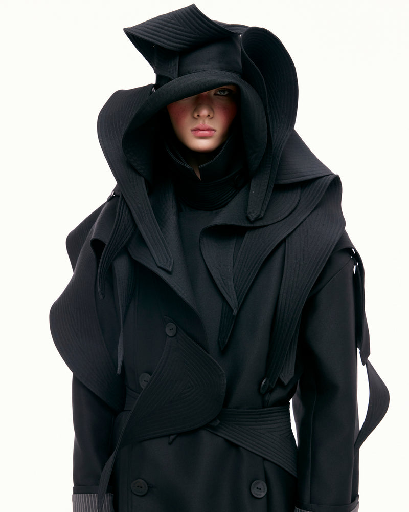 Description: A straight-hem shirt crafted from silk–cotton fabric. Its key highlight is the open-back design, creating a refined two-layer effect and enhanced with adjustable ties for flexible styling. The front panel features two interlaced layers for added visual interest, allowing the wearer to effortlessly adapt the piece to their own personal style.
