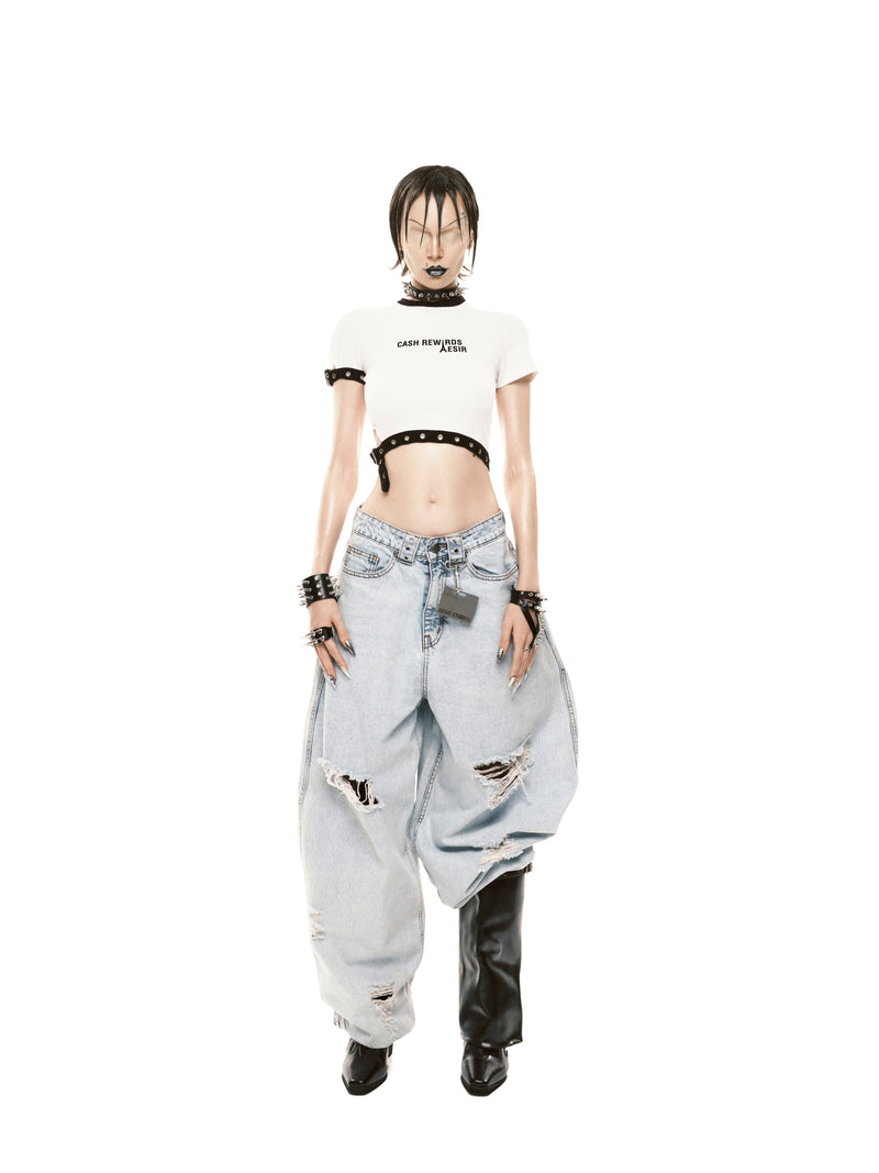SSSS - UNISEX - BLUE DISTRESSED BALLOON JEANS