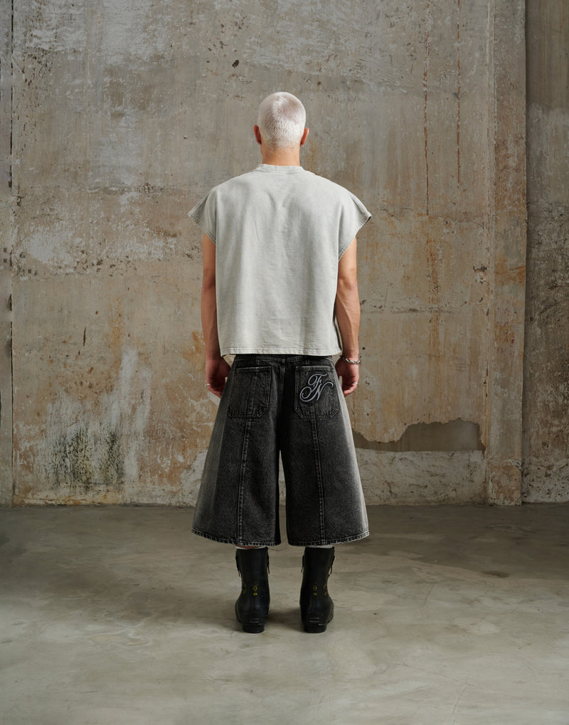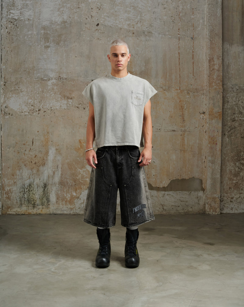 Tbc4 - "Fnos" Washed Bat Cut T-Shirt - Gray