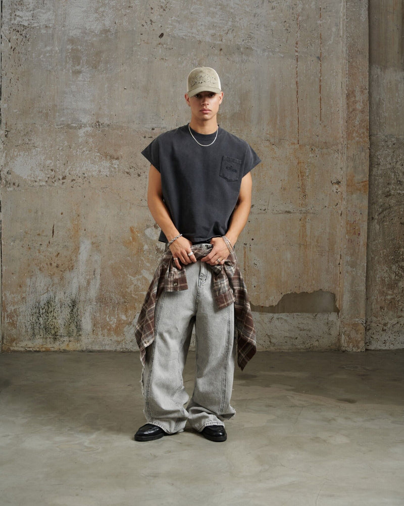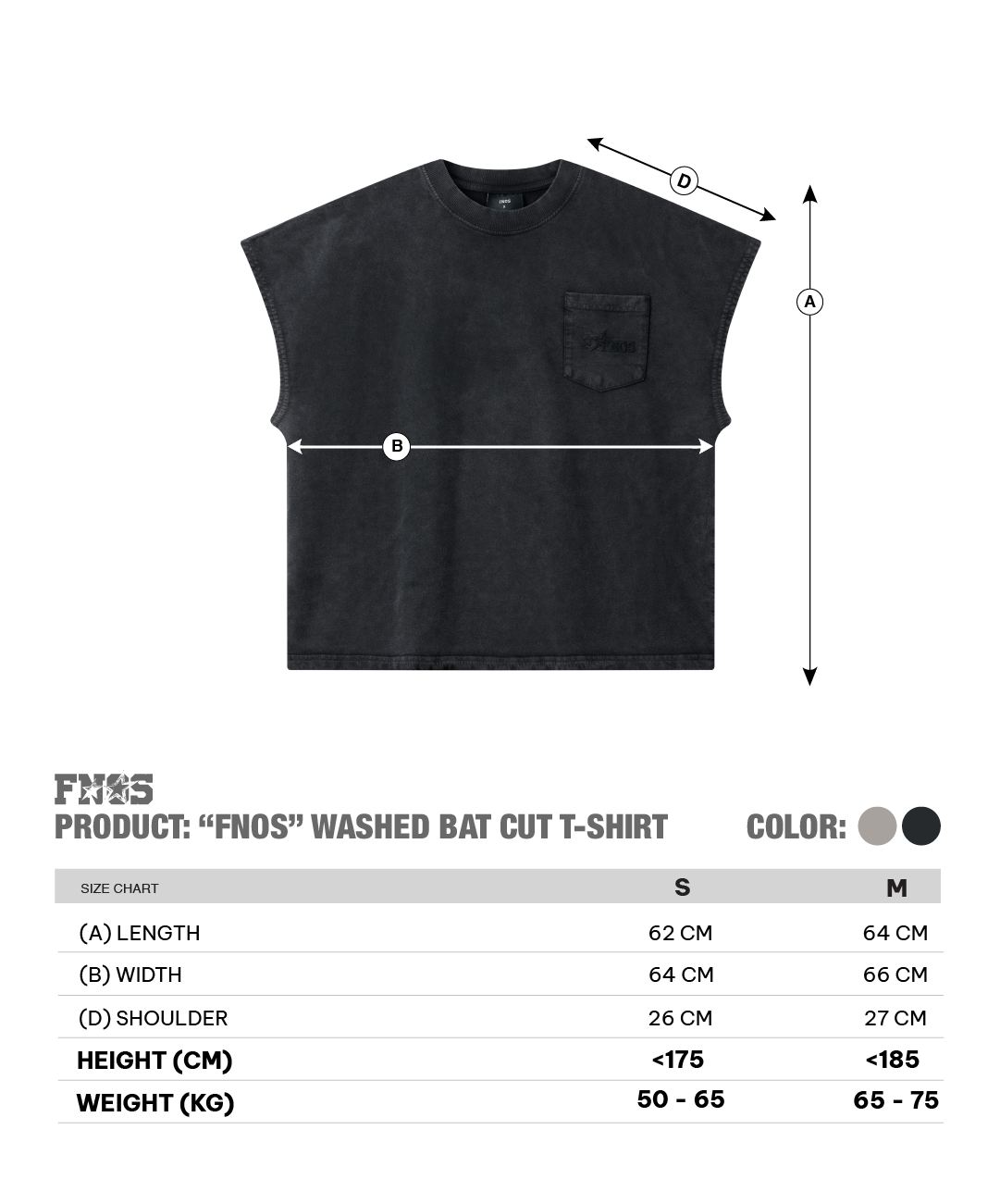 Tbc3 - "Fnos" Washed Bat Cut T-Shirt - Black