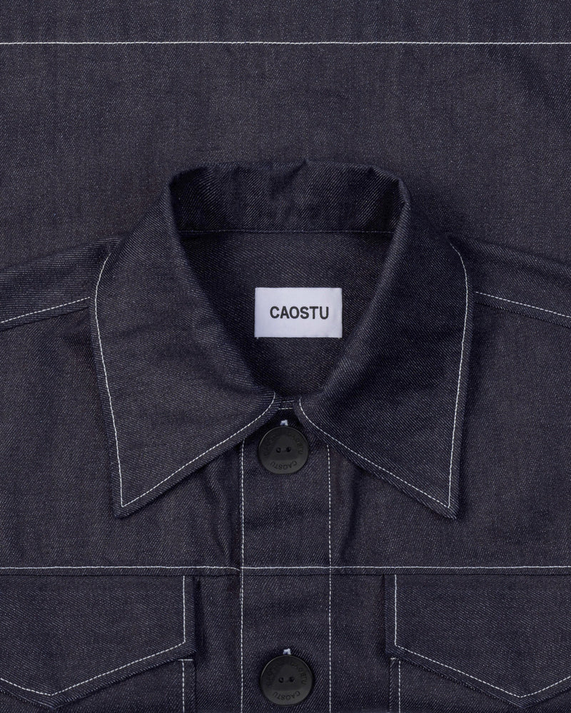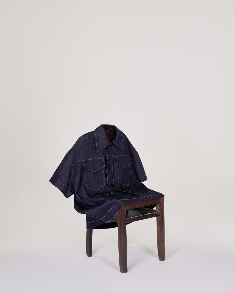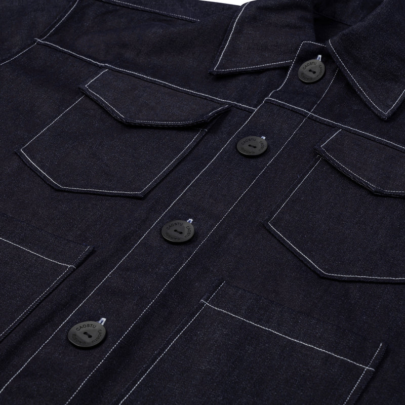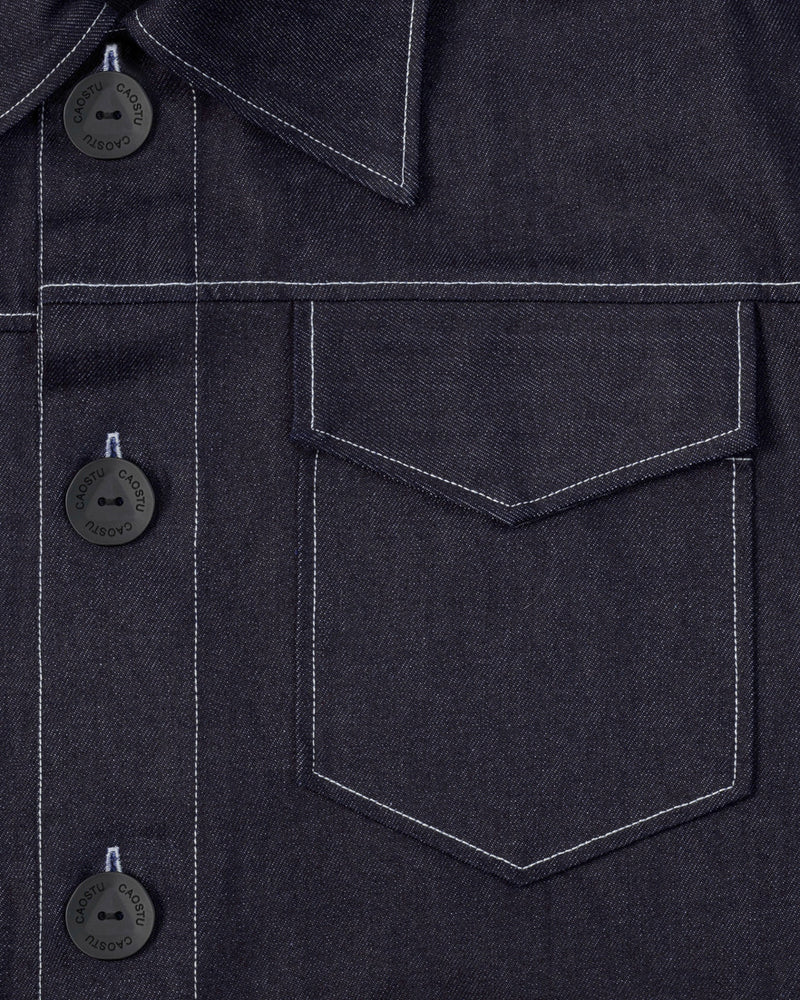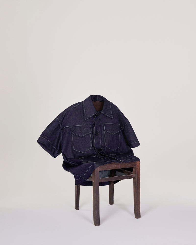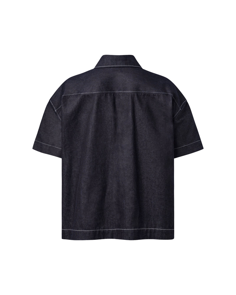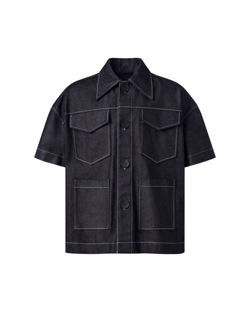 - This raw denim shirt features a boxy fit inspired by classic workwear styles.