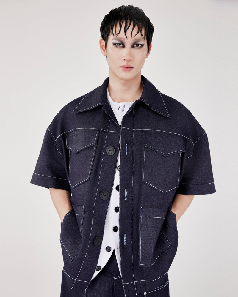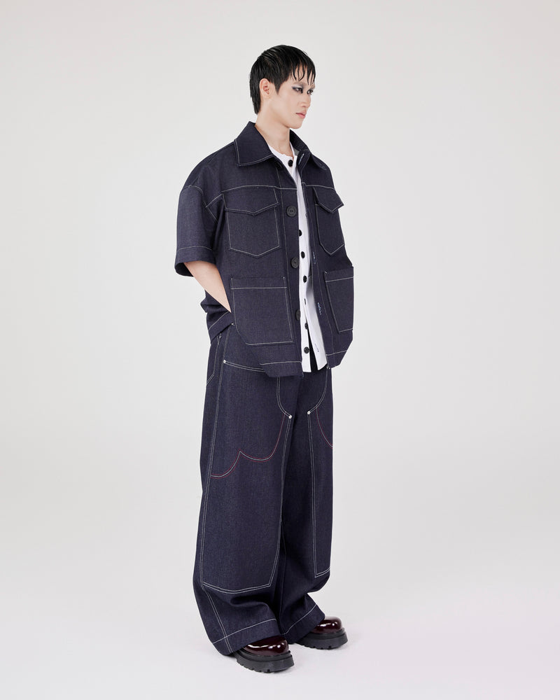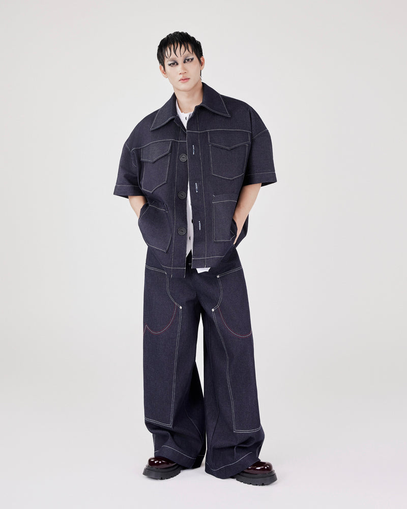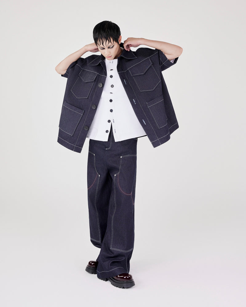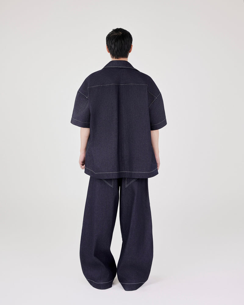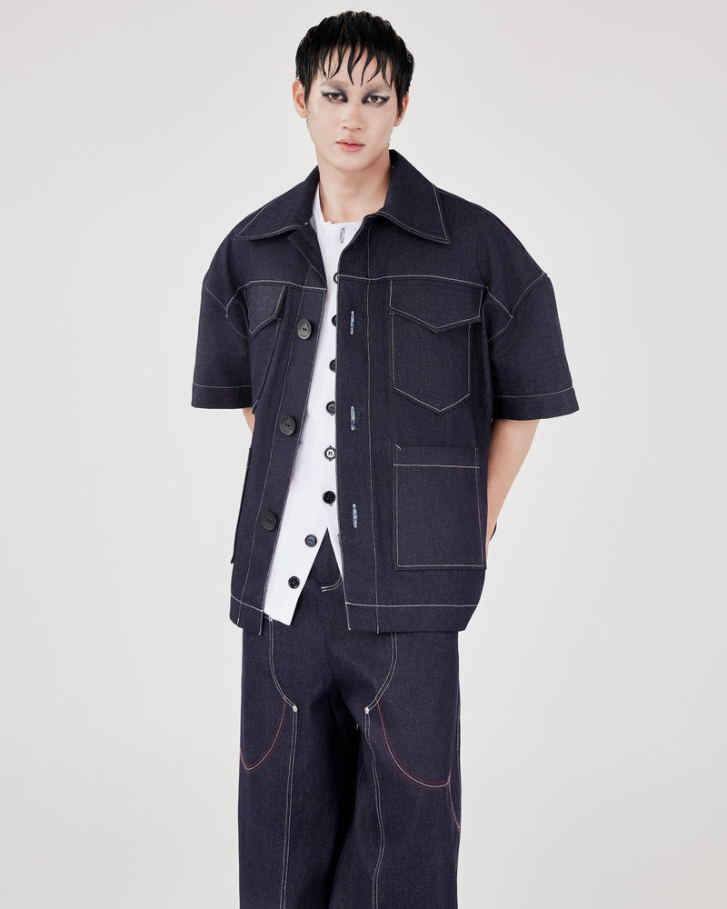 - This raw denim shirt features a boxy fit inspired by classic workwear styles.