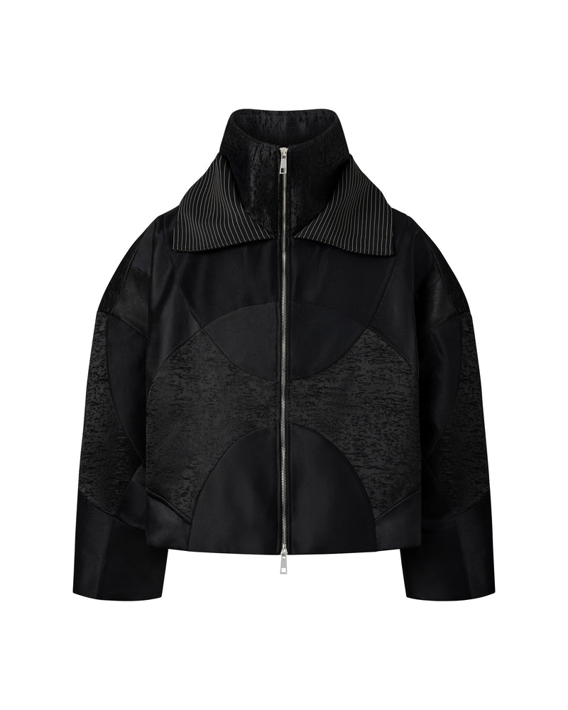 - The Beetle Patchwork Jacket is a unique, one-of-a-kind piece and the most special item from "The Beetle" collection. Featuring a boxy fit and sophisticated patchwork technique, this jacket is assembled from seven different fabrics—including twill cotton, satin, brocade, coarse linen, taffeta, twill linen, and khaki—bringing a unique depth of material and striking visual contrast.