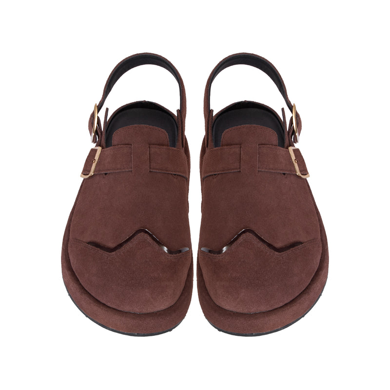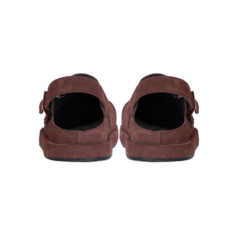 THEWOLF LOW CLOG SANDALS - DARK BROWN SUEDE