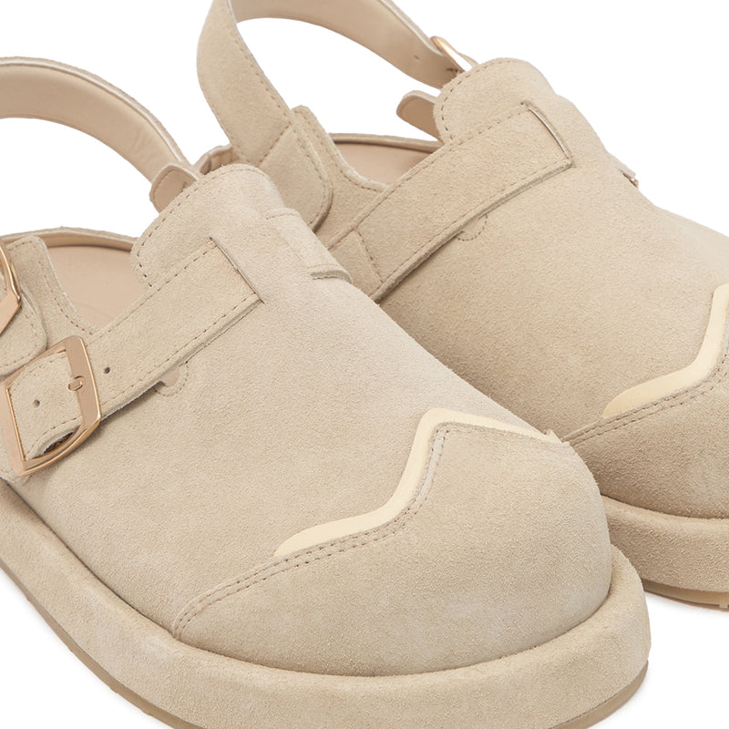 THEWOLF LOW CLOG SANDALS - TAN SUEDE
