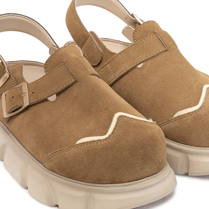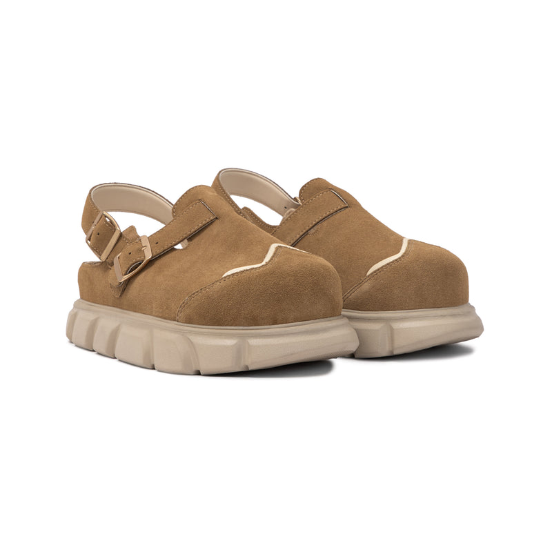 THEWOLF HIGH CLOG SANDALS - TOBACCO SUEDE