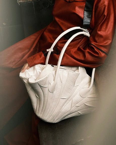 White Dried Lotus Leaves Leather Bag