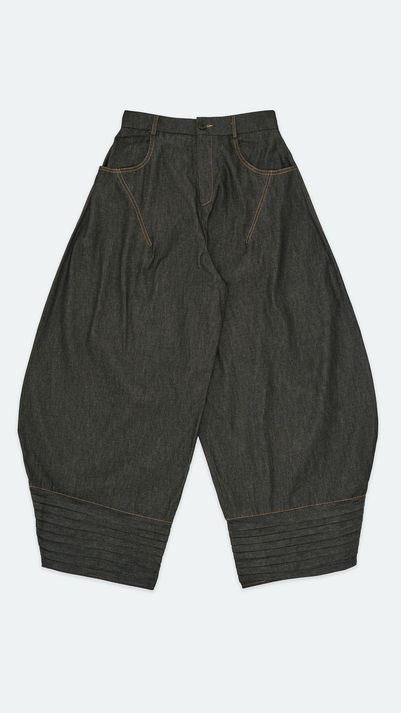 - Crafted from durable raw denim, these versatile jeans are inspired by the stacked ceramic plates of the pottery workshop.
