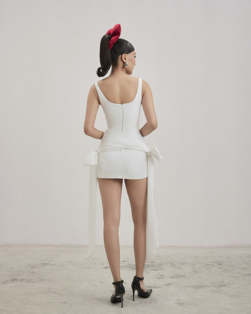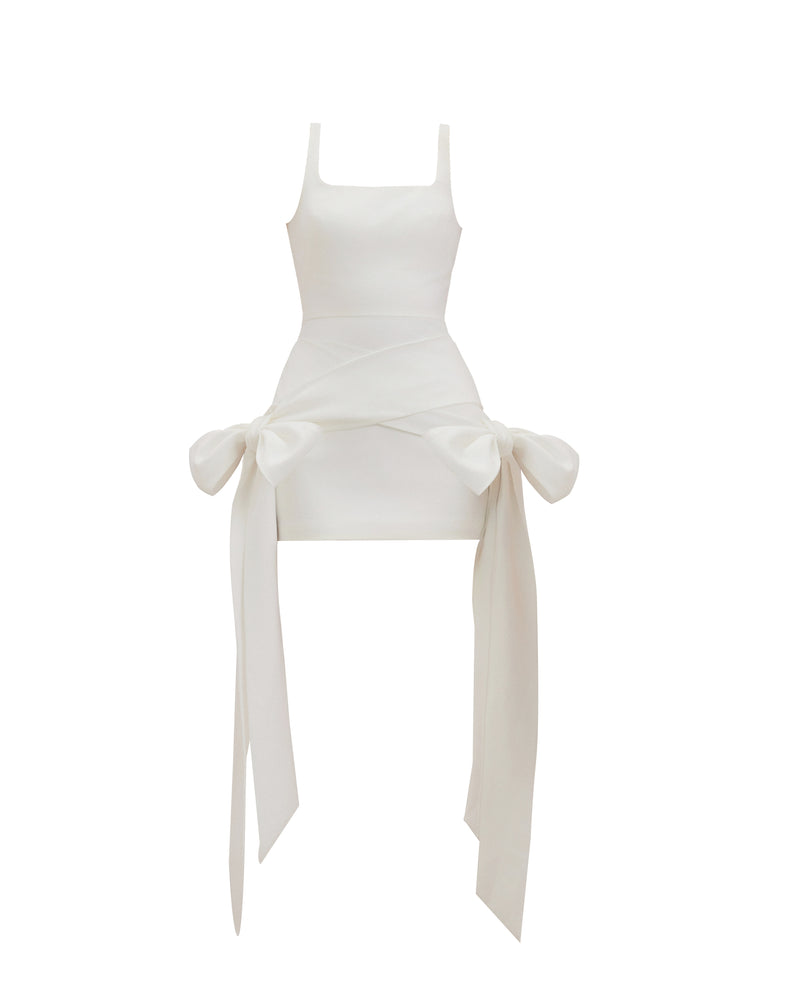 - The bow details tied on both sides enhance the curves, adding a stylish focal point to the dress.